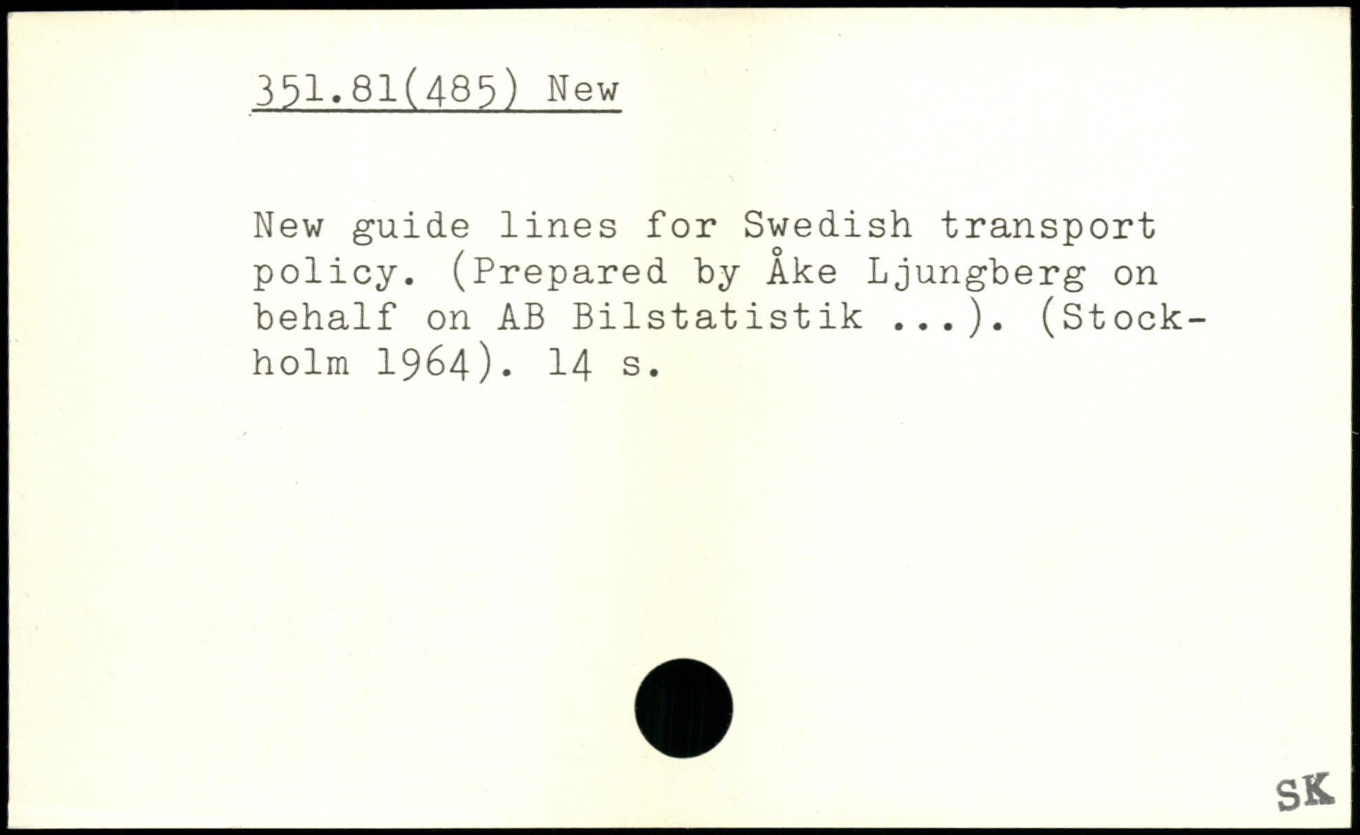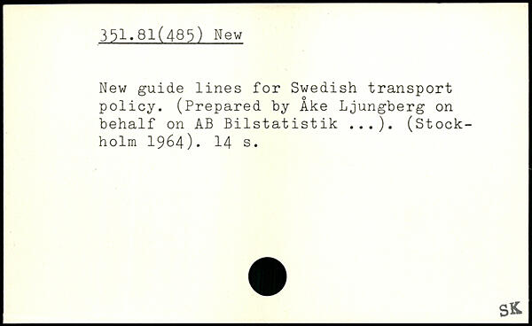 New guide lines for Swedish transport policy. (Prepared by Ake Ljungberg on behalf on AB Bilstatistik ...). (