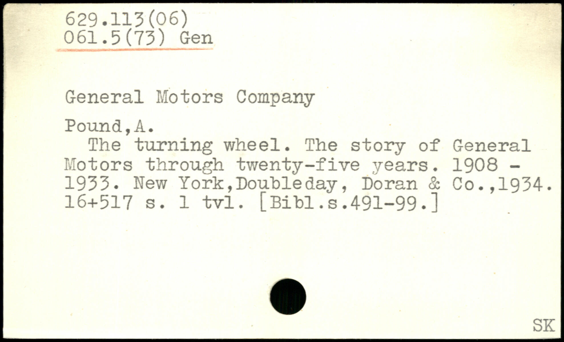 General Motors Company Pound,A. The turning wheel. The story of General Motors through twenty-five years. 1908 -1933.