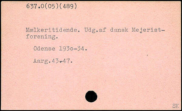 Mælkeritidende, Udg.af dansk Mejeristforening, Odense 193o-34. Aarg. 43..47.