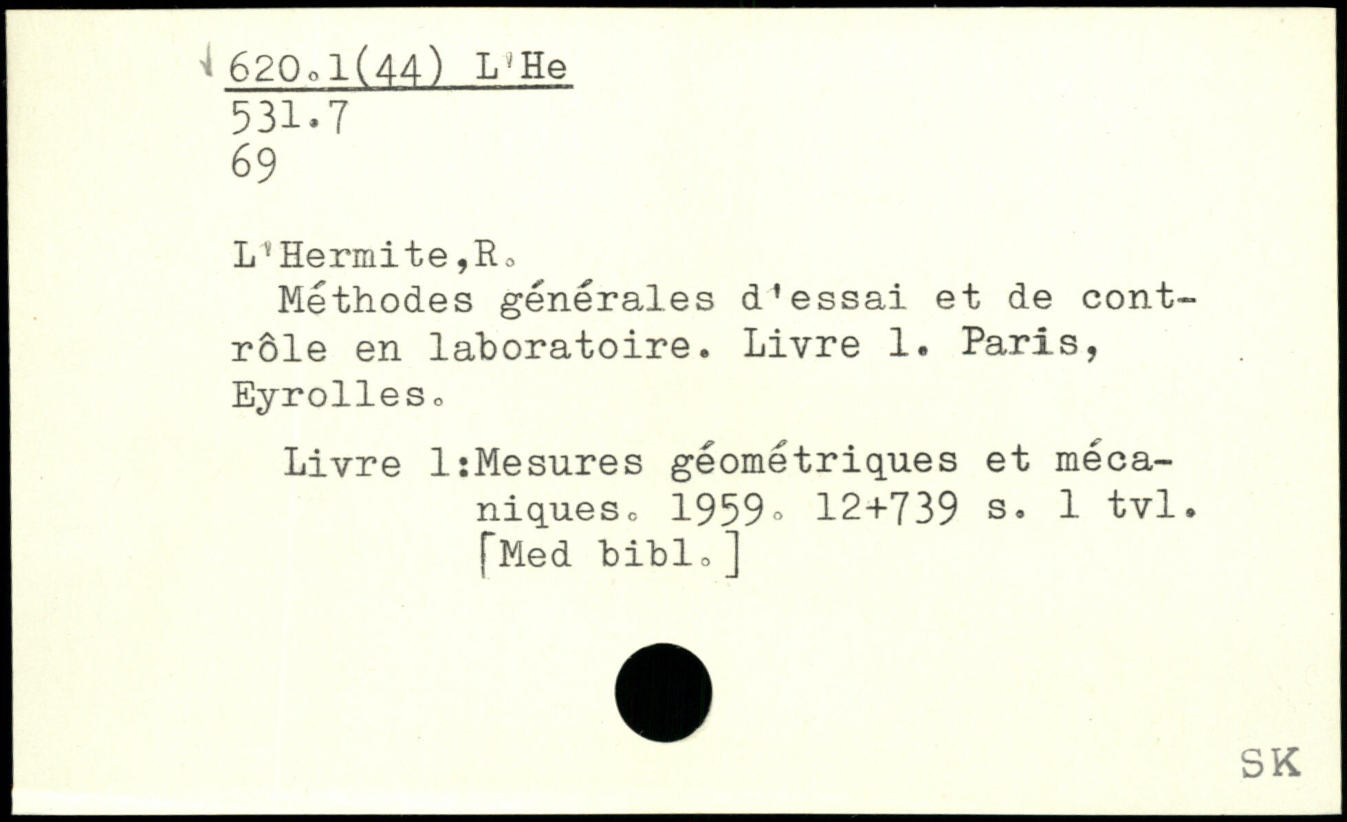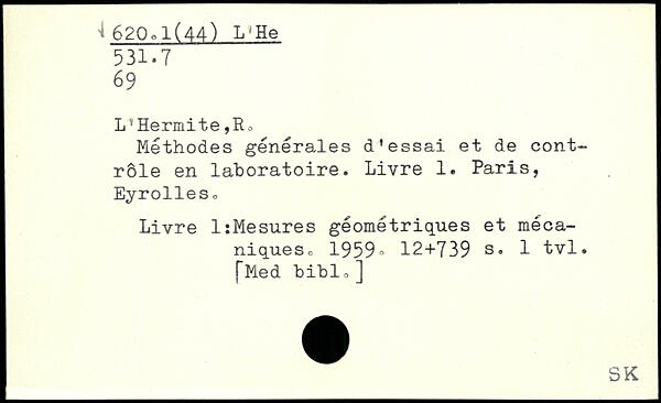 Méthodes générales d'essai et de contrôle en laboratoire. Livre 1. Paris, Eyrolles o Livre