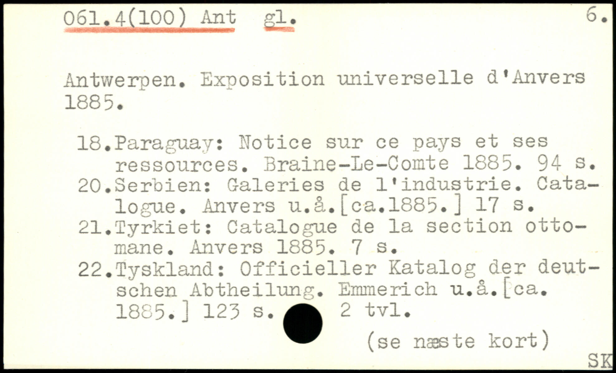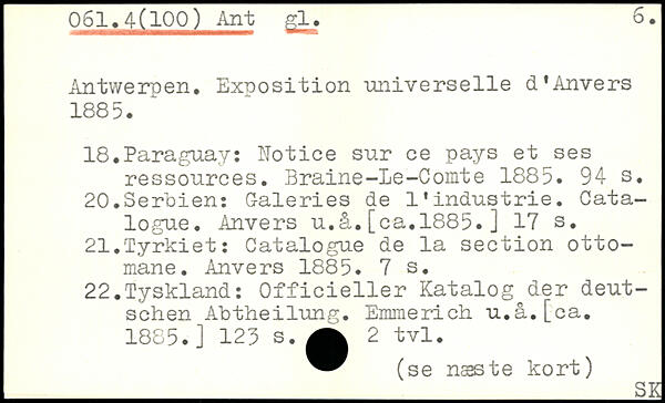 Antwerpen. Exposition universelle d'Anvers 1885. 18.Paraguay: Notice sur ce pays et ses ressources. Braine-Le-Comte 1885.