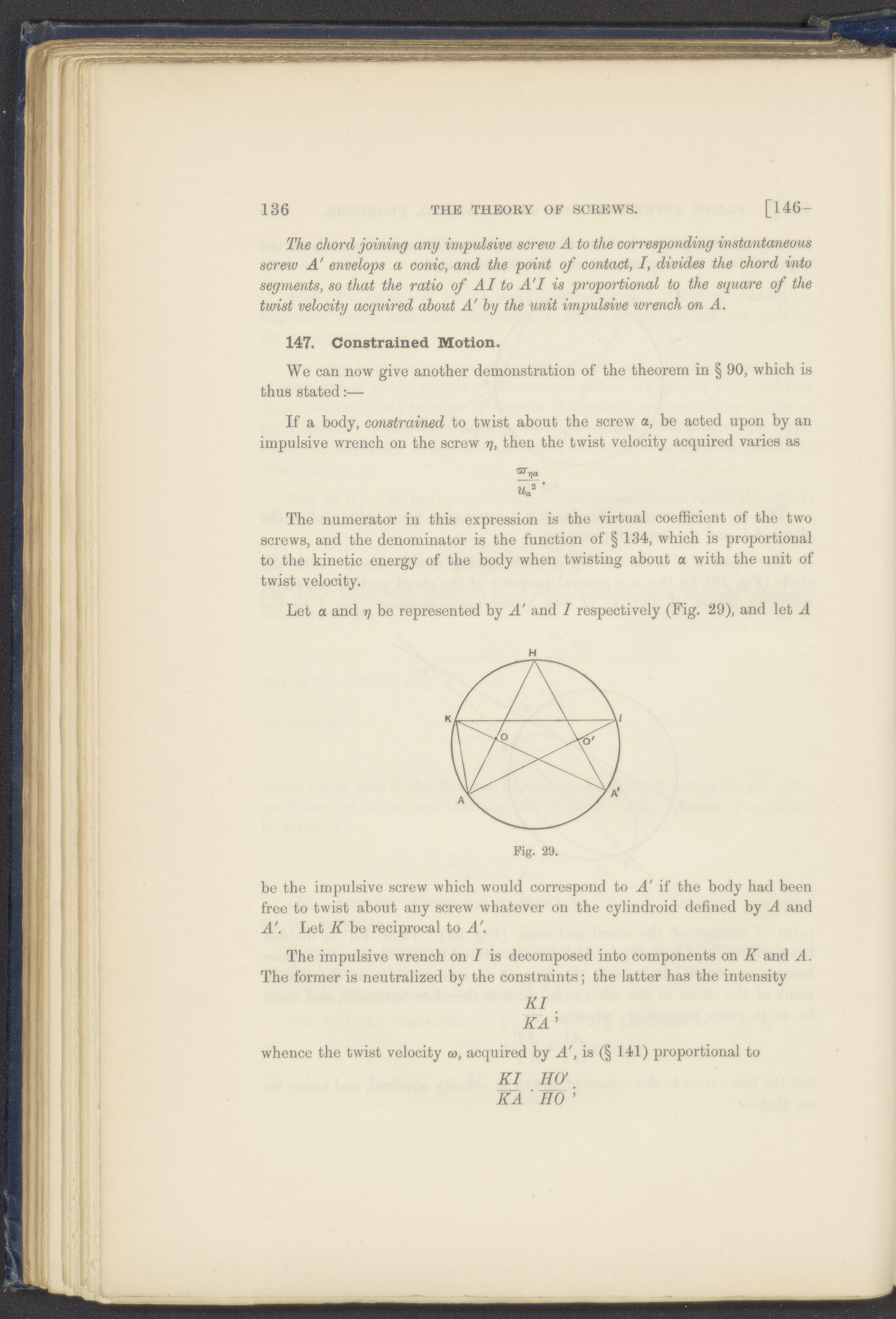 screw A' envelops a conic, and the point of contact, I, divides the chord into