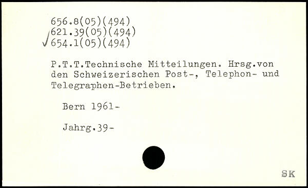 P.T.T.Technische Mitteilungen. Hrsg.von den Schweizerischen Post-, Telephon- und Telegraphen-Betrieben.