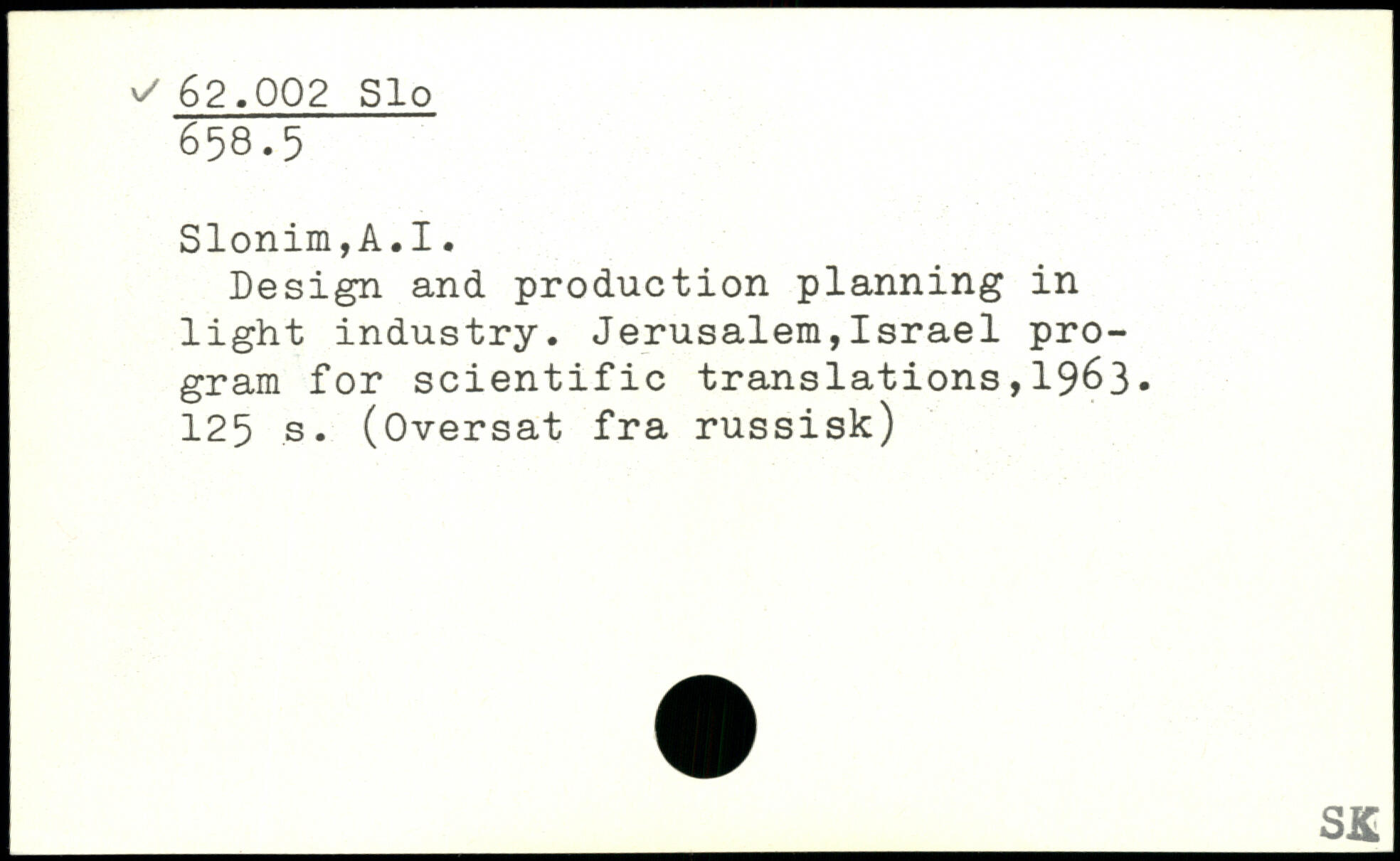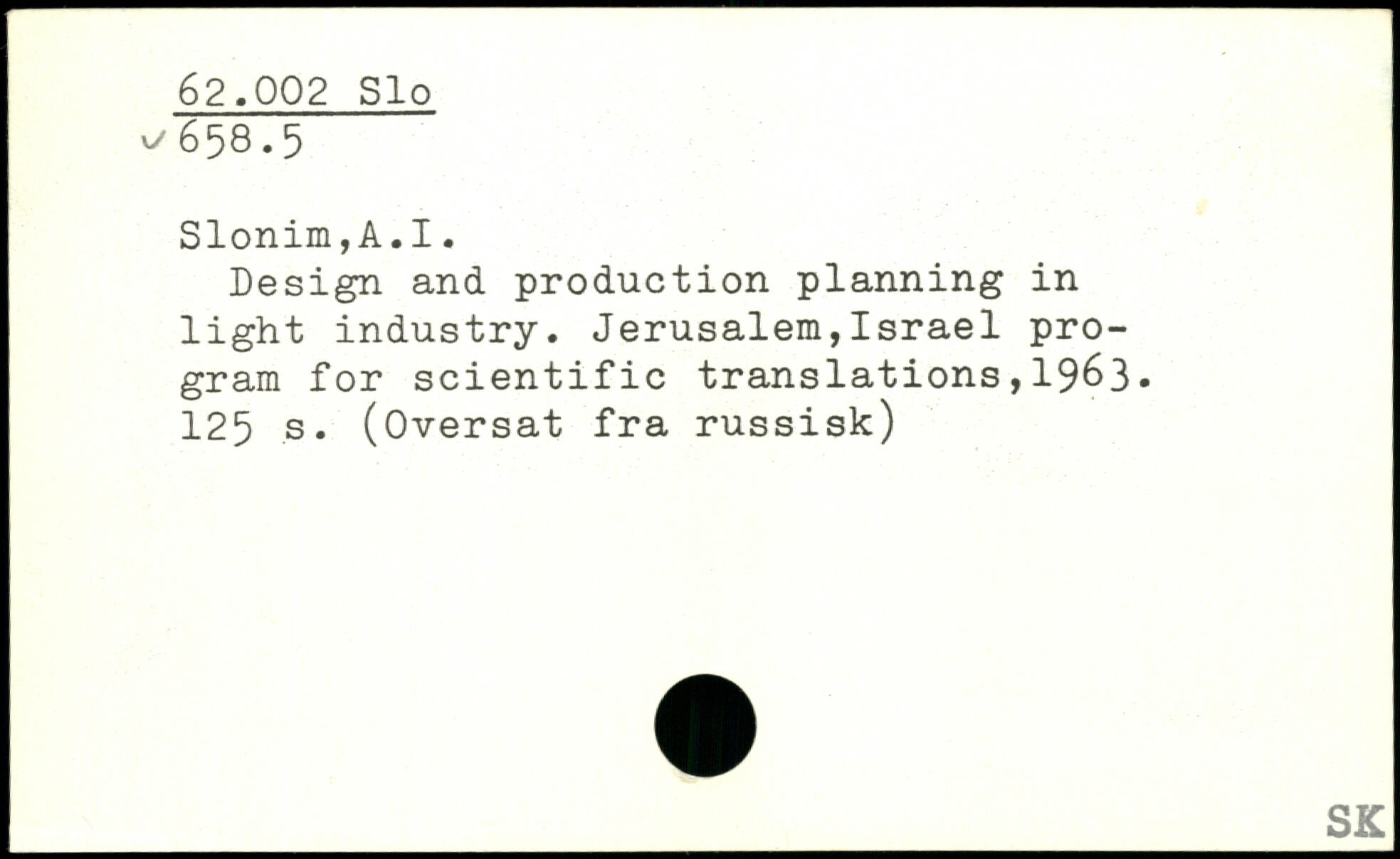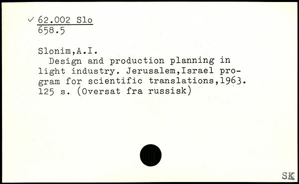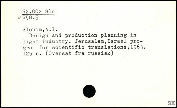 Design and production planning in light industry. Jerusalem,Israel program for scientific translations,1963.