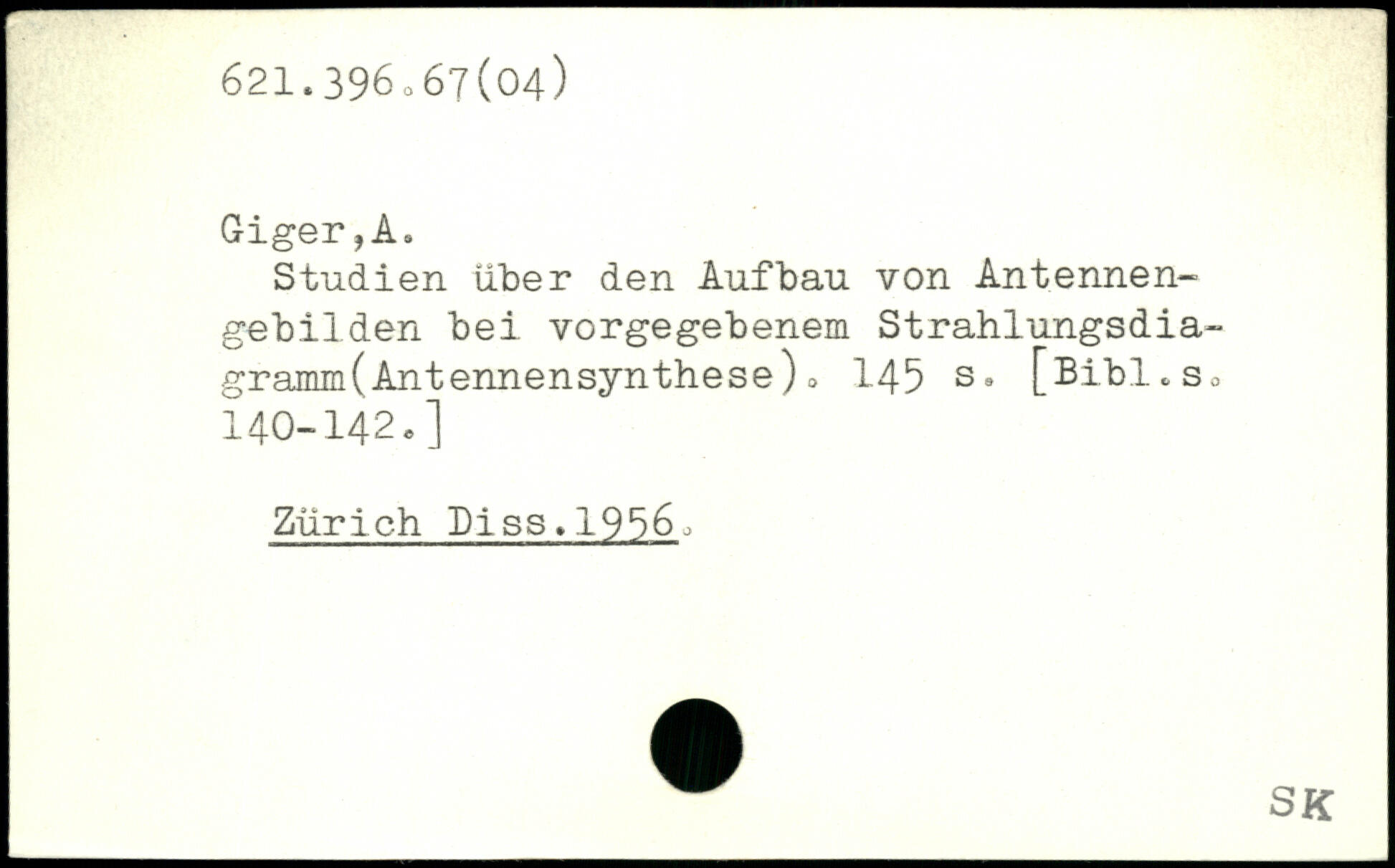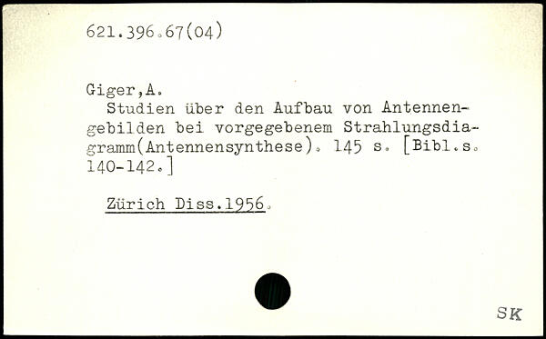 Studien über den Aufbau von Antennengebilden bei vorgegebenem Strahlungsdia-gramm(Antennensynthese)