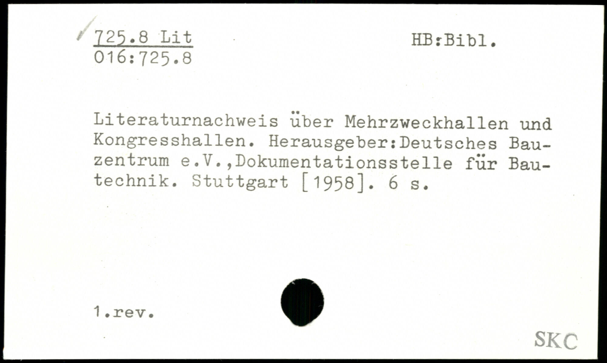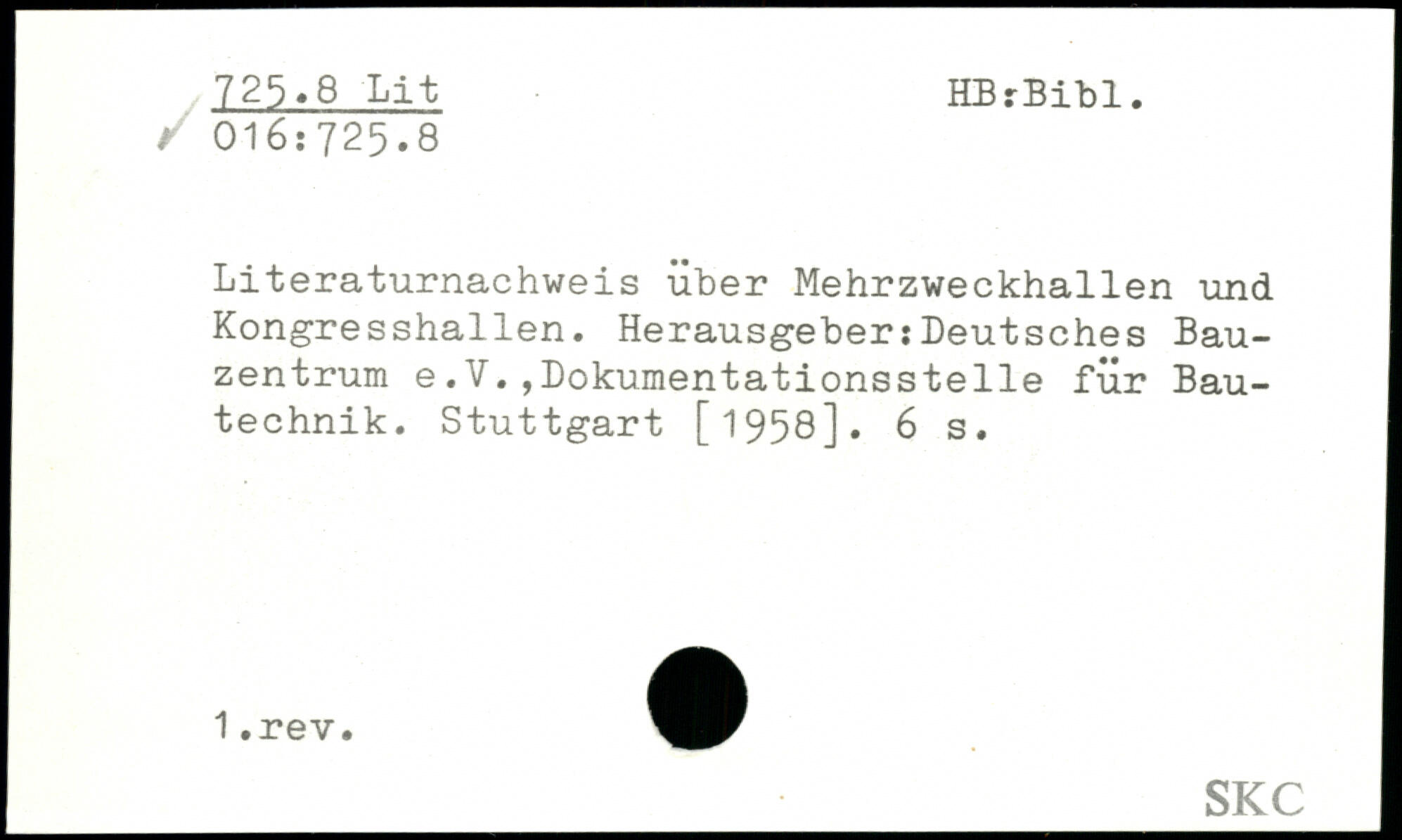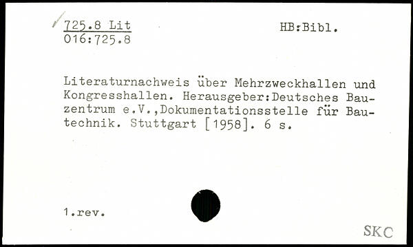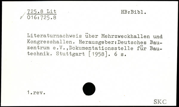Literaturnachweis über Mehrzweckhallen und Kongresshallen. Herausgeber:Deutsches Bauzentrum e.V.,Dokumentationsstelle für Bautechnik.