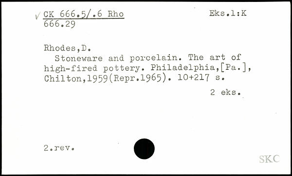 Stoneware and porcelain. The art of high-fired pottery. Philadelphia,[Pa.], Chilton,1959(P-epr.1965).