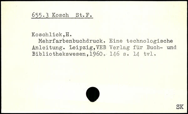 Mehrfarbenbuchdruck, Eine technologische Anleitung. Leipzig,VEB Verlag für Buch- und Bibliothekswesen,1960o