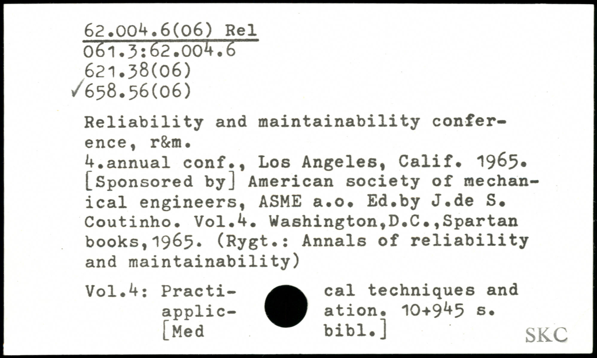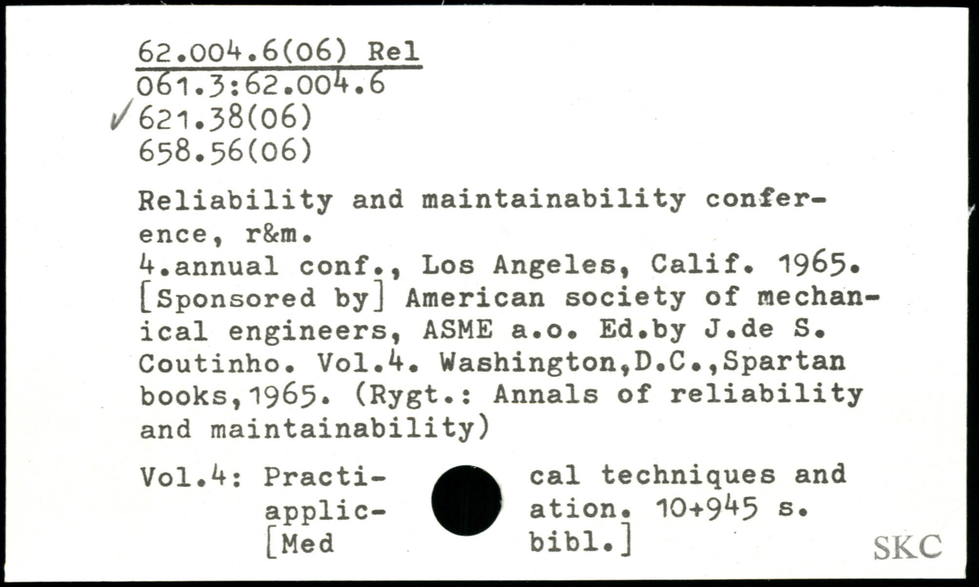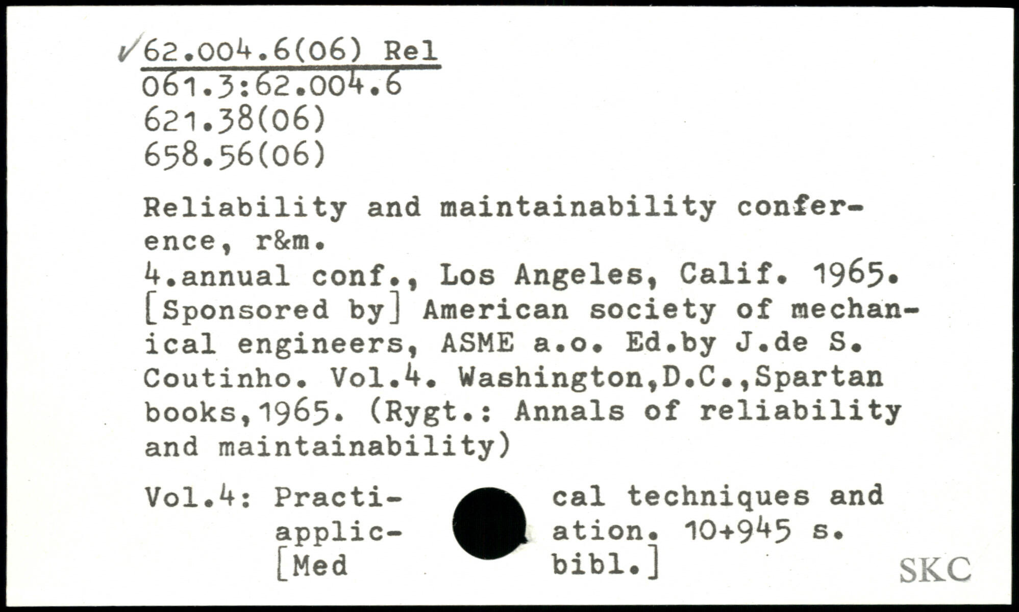 Reliability and maintainability conference, r&m. U.annual conf., Los Angeles, Calif. 1965, [Sponsored by] American society of mechanical engineers, ASME a.o. Ed.by J.de S. Coutinho.