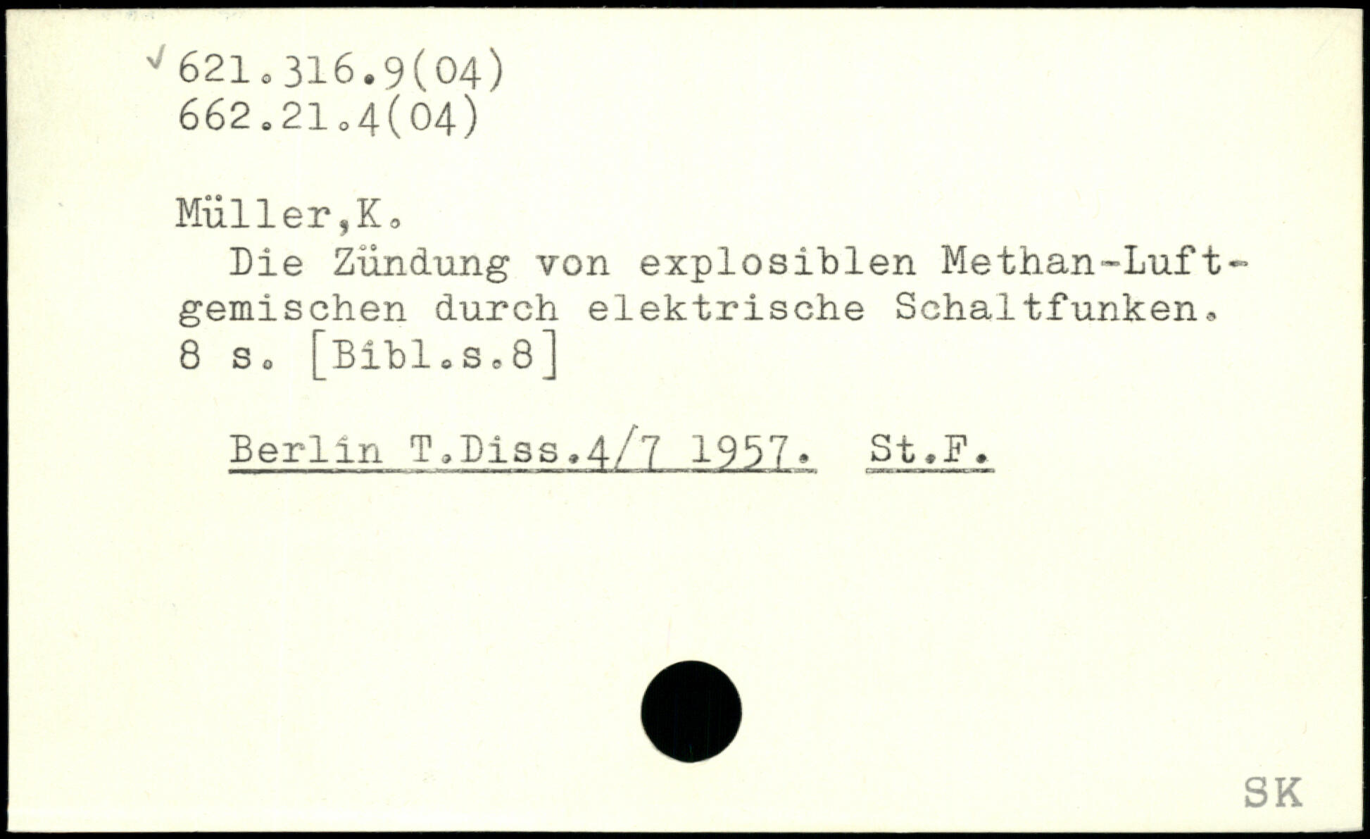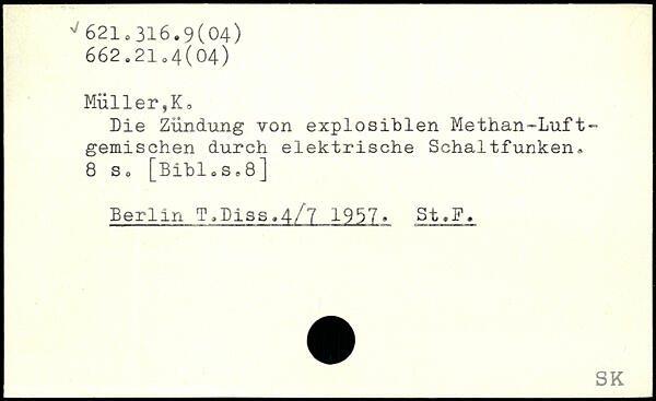 Die Zündung von explosiblen Methan-Luft-gemischen durch elektrische Schaltfunken.