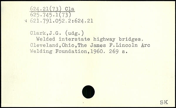 Welded interstate highway bridges. Cleveland,Ohio,The James F.Lincoln Arc Welding Foundation,1960.