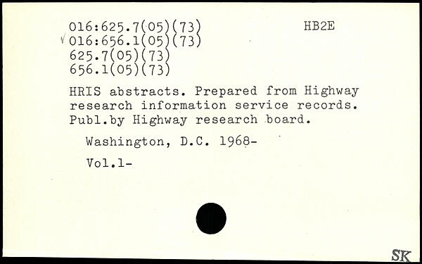 UDK: 016:625.7(05)(73), 016:656.1(05)(73), 625.7(05)(73), 656.1(05)(73)
