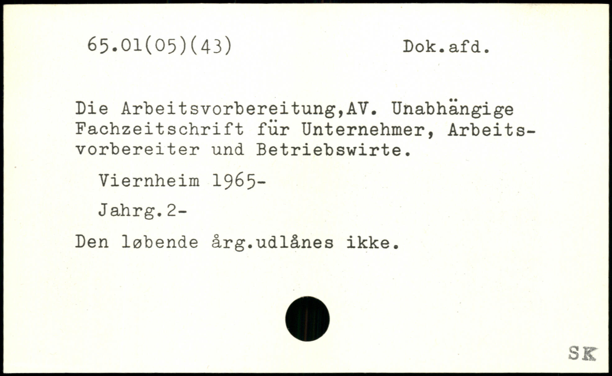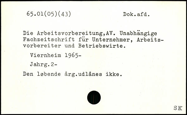 Die Arbeitsvorbereitung,AV. Unabhängige Fachzeitschrift für Unternehmer, Arbeitsvorbereiter und Betriebswirte. Viernheim 1965- Jahrg. 2- Den løbende årg.udlånes ikke.