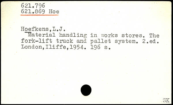 “Material handling in works stores. The fork-lift truck and pallet system.