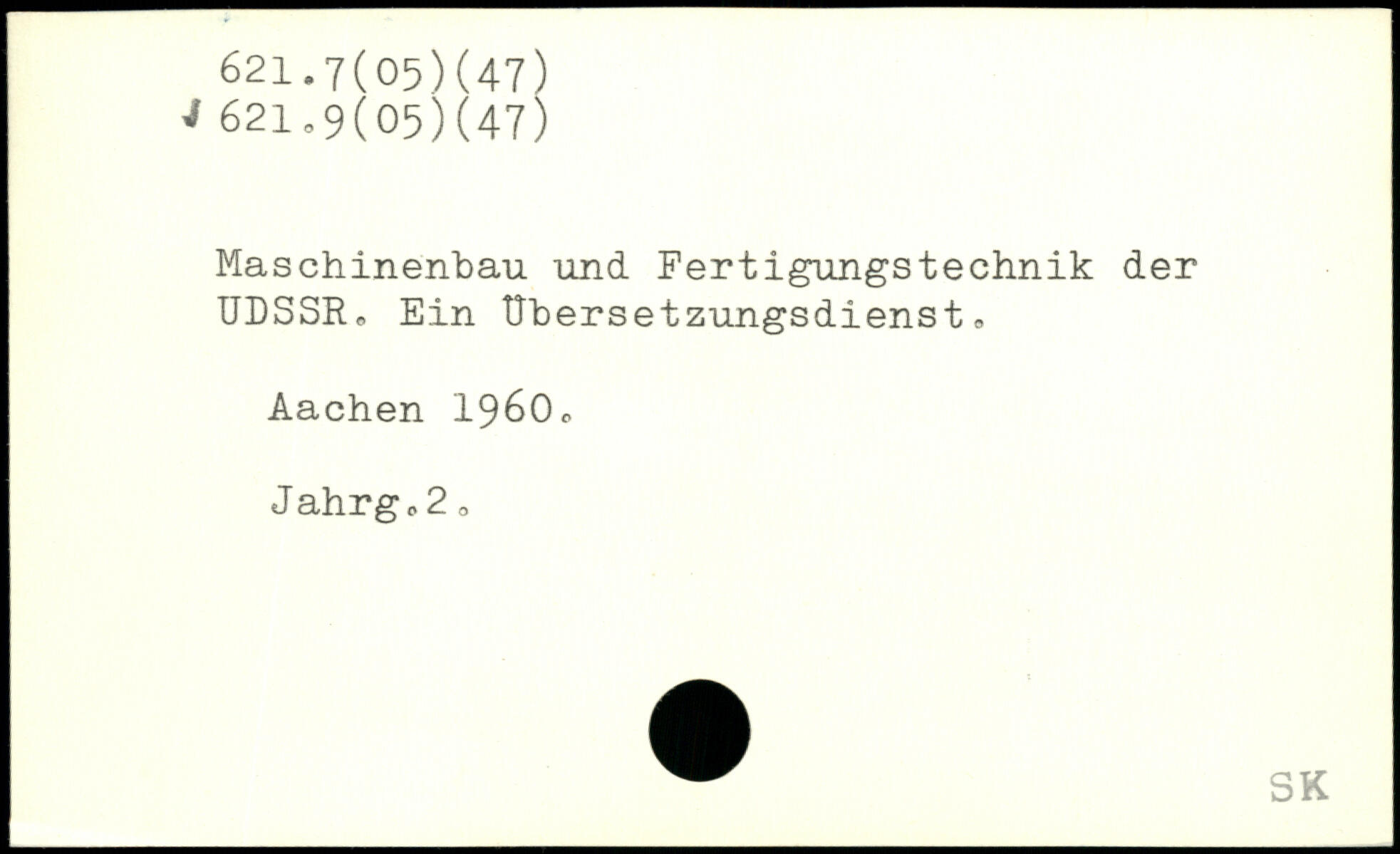 Maschinenbau und Fertigungstechnik der UDSSR, Ein übersetzungsdienst