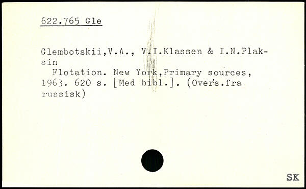 Glembotskii,V.A., V;I.Klassen & I.N.Plak-3 in & Flotation.