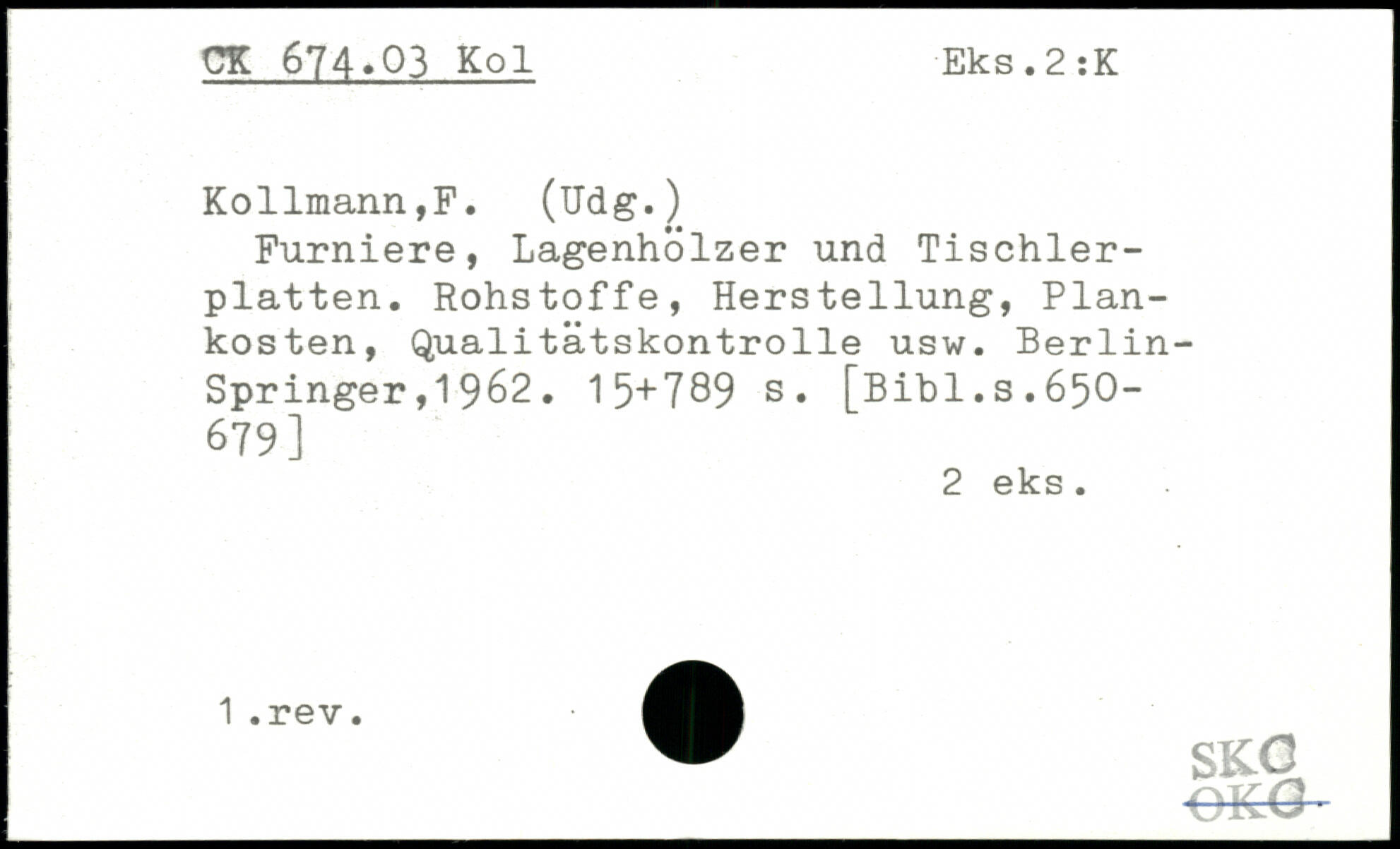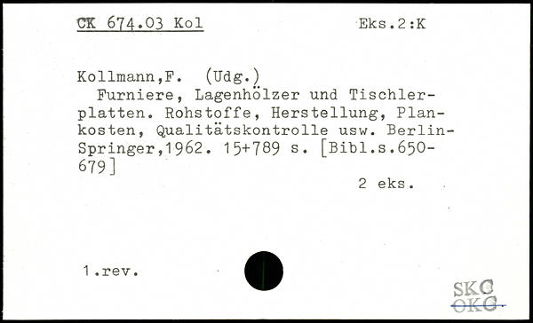 Furniere, Lagenhölzer und Tischlerplatten. Rohstoffe, Herstellung, Plankosten, Qualitätskontrolle usw. Berlin-Springer ,1962.