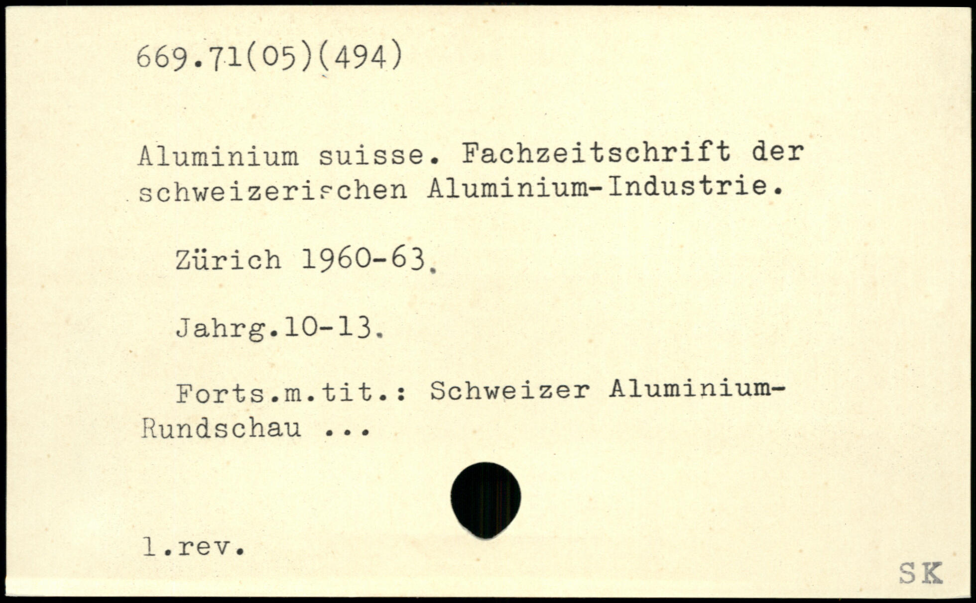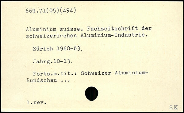 Aluminium suisse. Fachzeitschrift der schweizerischen Aluminium-Industrie. Zürich 1960-63, Jahrg.10-13. Forts.m.tit.: Schweizer Aluminium- Rundschau ...