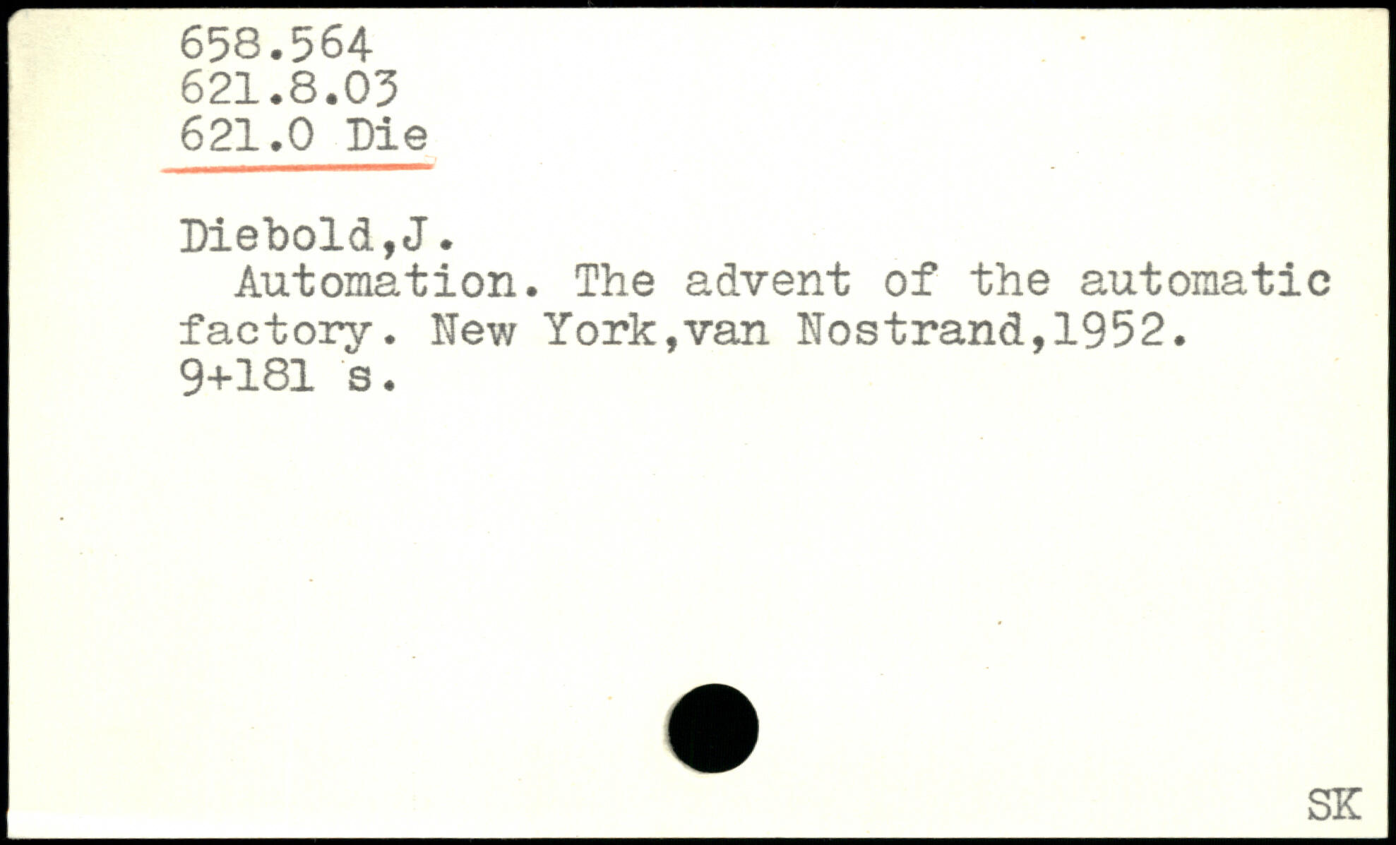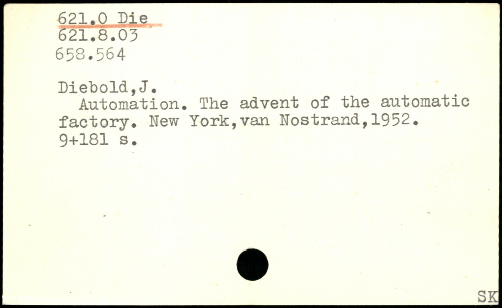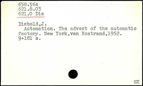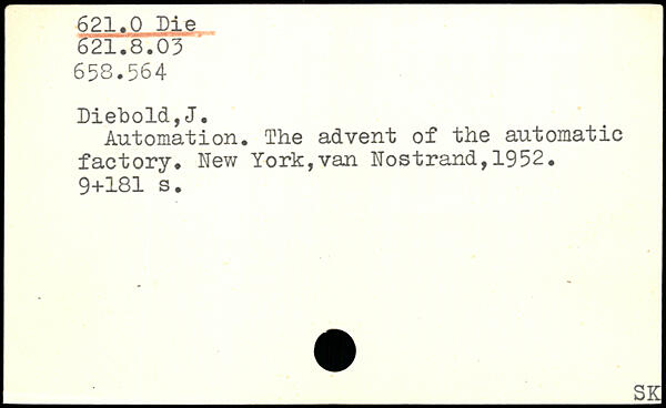Automation. The advent of the automatic factory. New York,van Nostrand,1952.