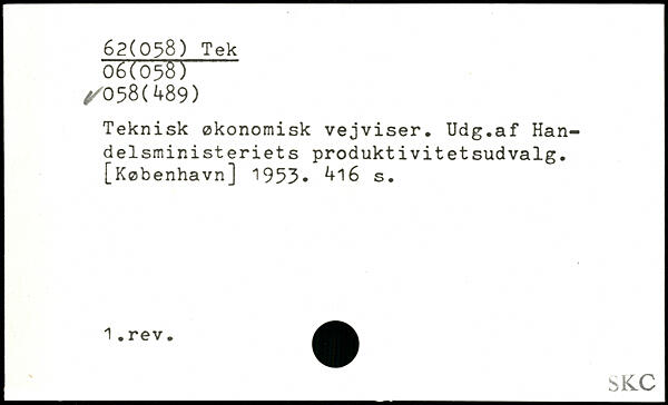 Teknisk økonomisk vejviser. Udg.af Handelsministeriets produktivitetsudvalg.