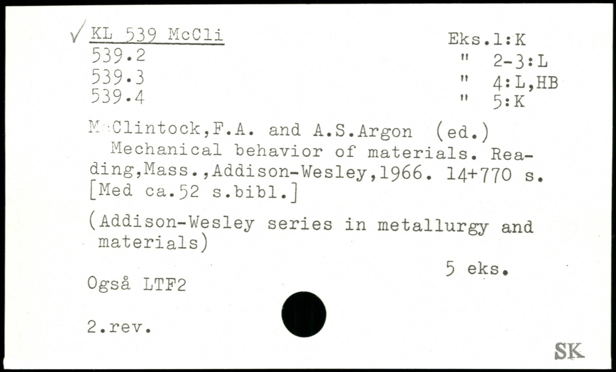 K-.Clintock,F.A. and A.S.Argon (ed.) Mechanical behavior of materials.