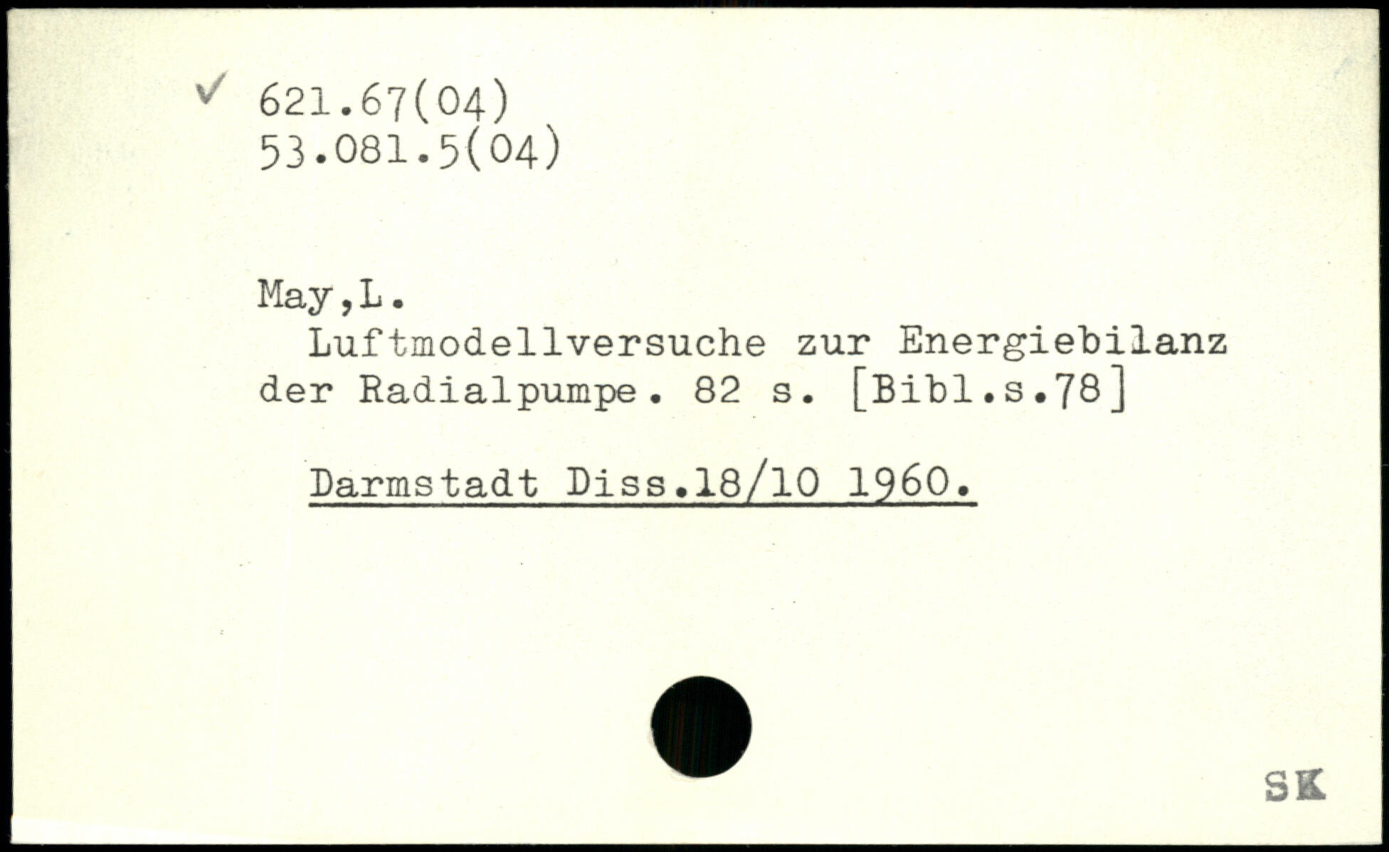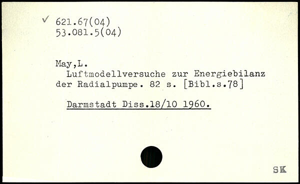 Luftmodellversuche zur Energiebilanz der Radialpumpe.