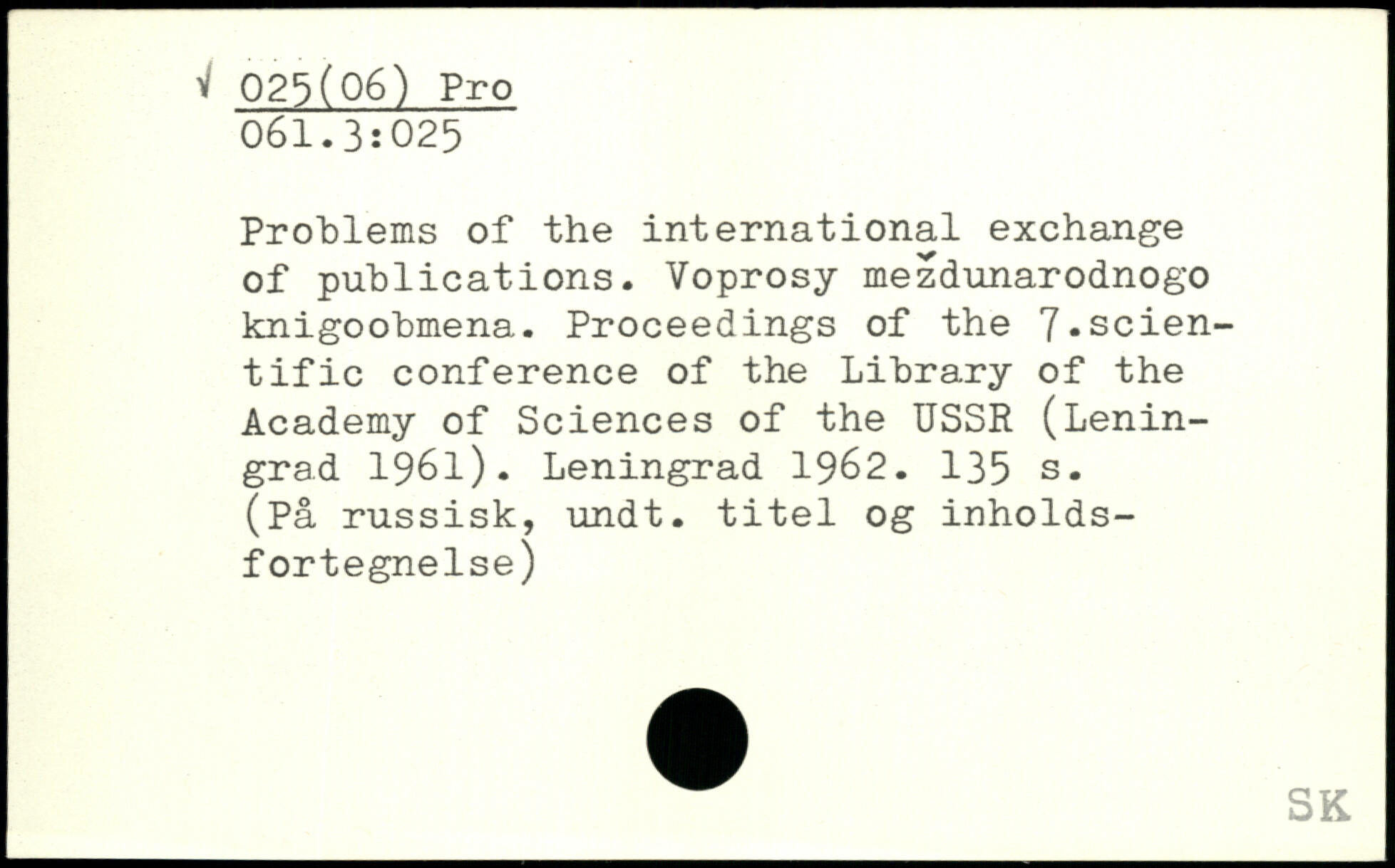 Problems of the international exchange of publications. Voprosy mezdunarodnogo knigoobmena. Proceedings of the 7,scientific conference of the Library of the Academy of Sciences of the USSR (