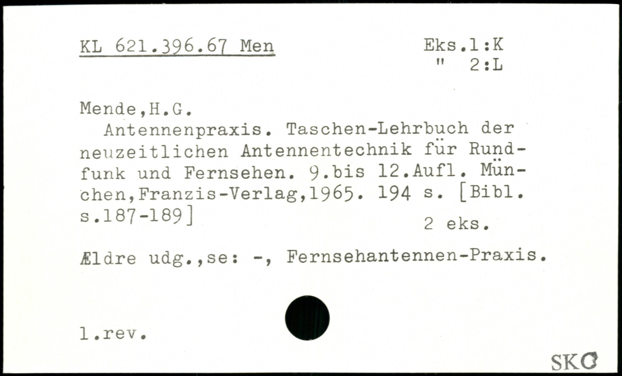 Antennenpraxis. Taschen-Lehrbuch der neuzeitlichen Antennentechnik fur Rundfunk und Fernsehen. 9-bis