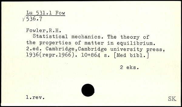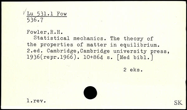 Statistical mechanics. The theory of the properties of matter in equilibrium.