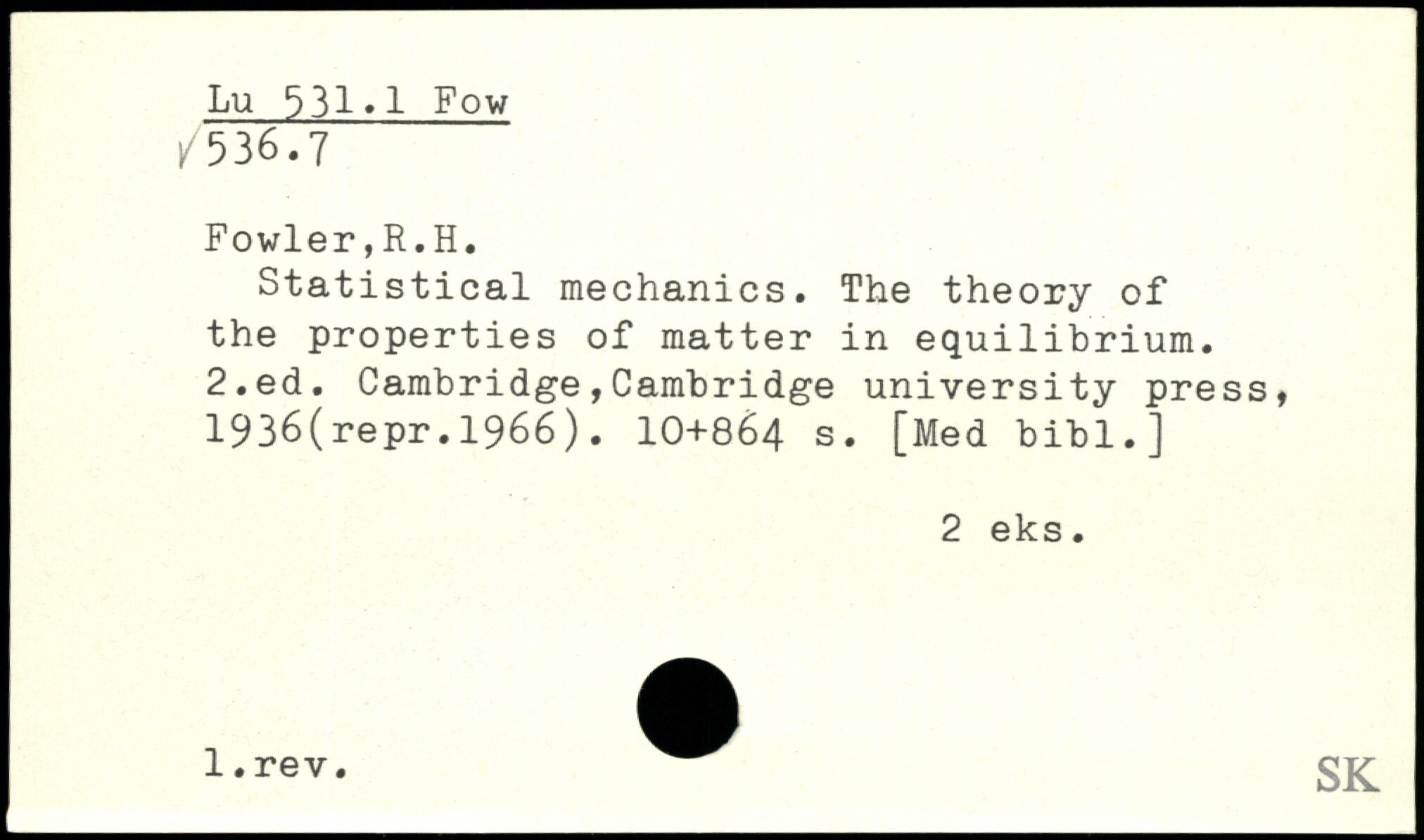 UDK: 531.1 Fow, 536.7