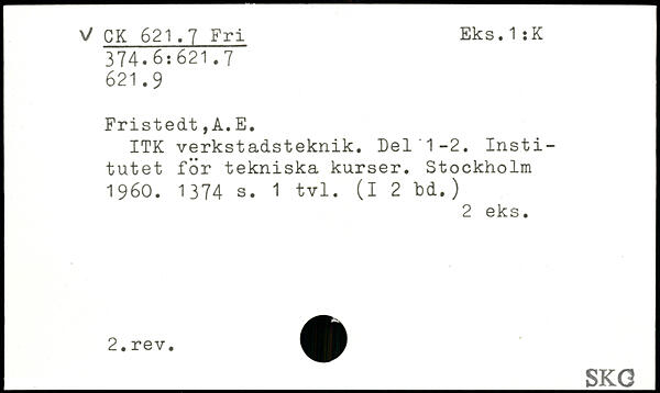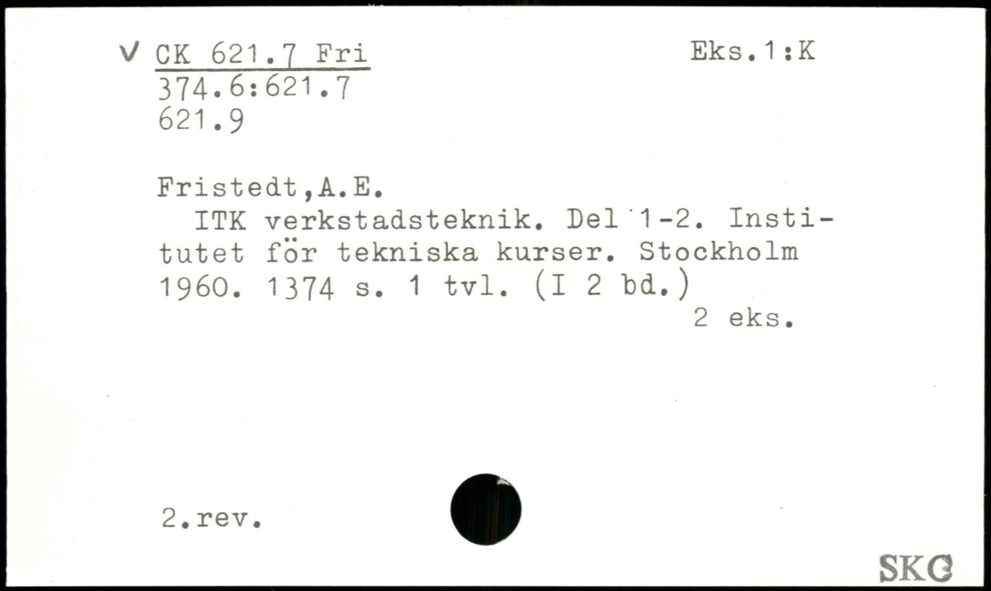 ITK verkstadsteknik. Del'1-2. Institutet för tekniska kurser.