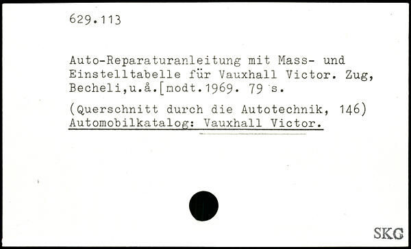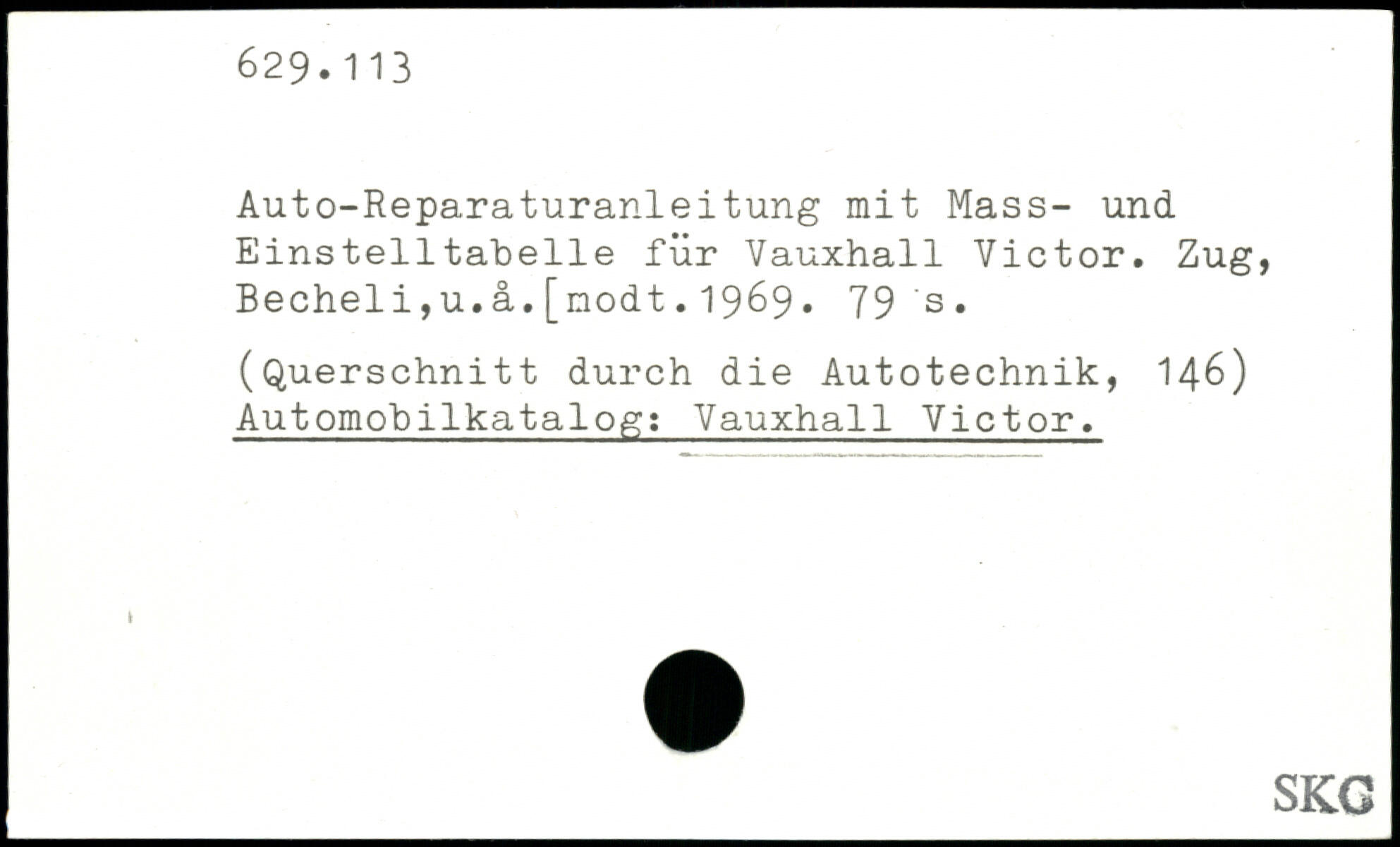 Auto-Reparaturanleitung mit Mass- und Einsteil tabeile für Vauxhall Victor. Zug, Becheli,u.ä.[nodt.1969. 79 's. (Querschnitt durch die Autotechnik, 146) Automobilkatalog: Vauxhall Victor.