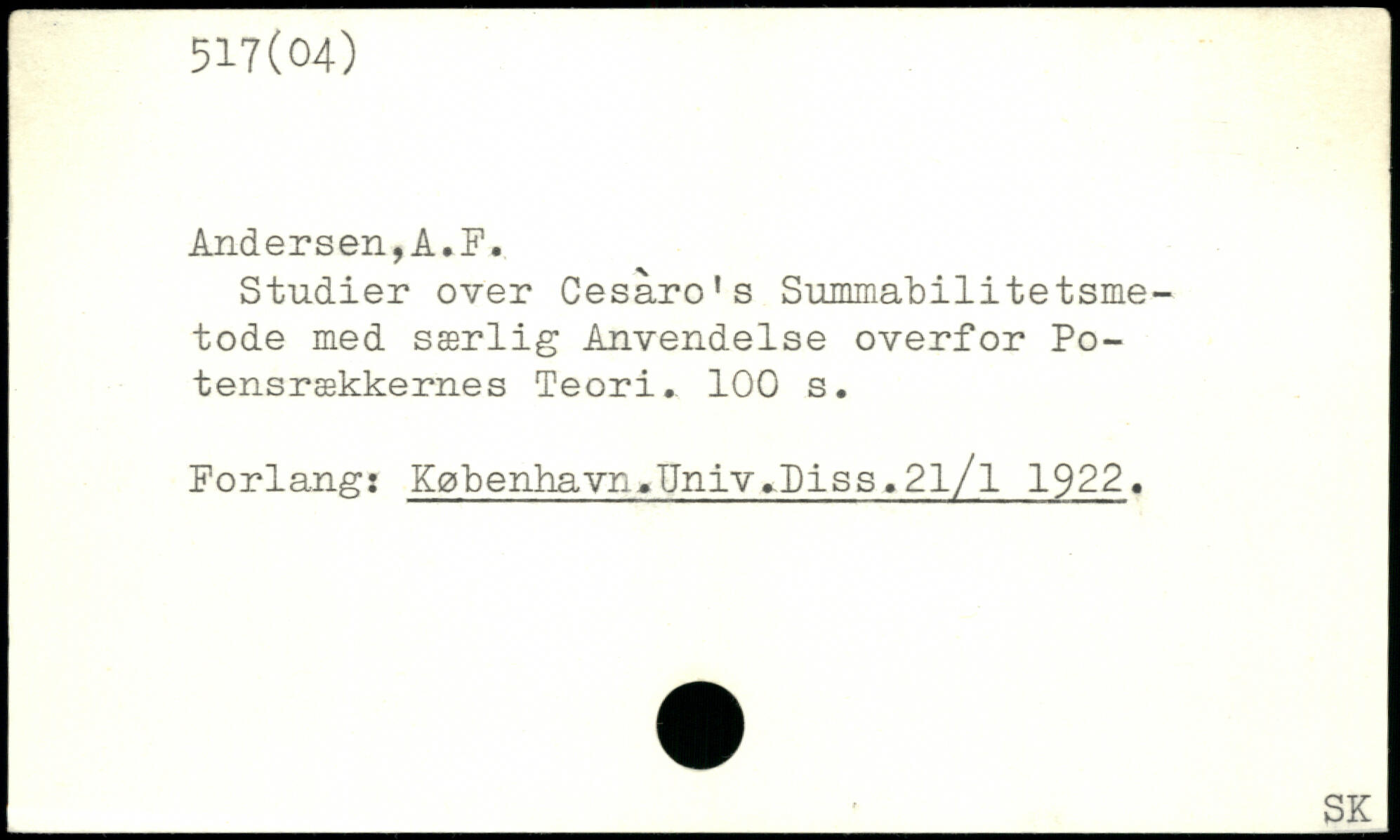 Studier over Cesaro’s Summabilitetsme-tode med særlig Anvendelse overfor Potensrækkernes Teori.