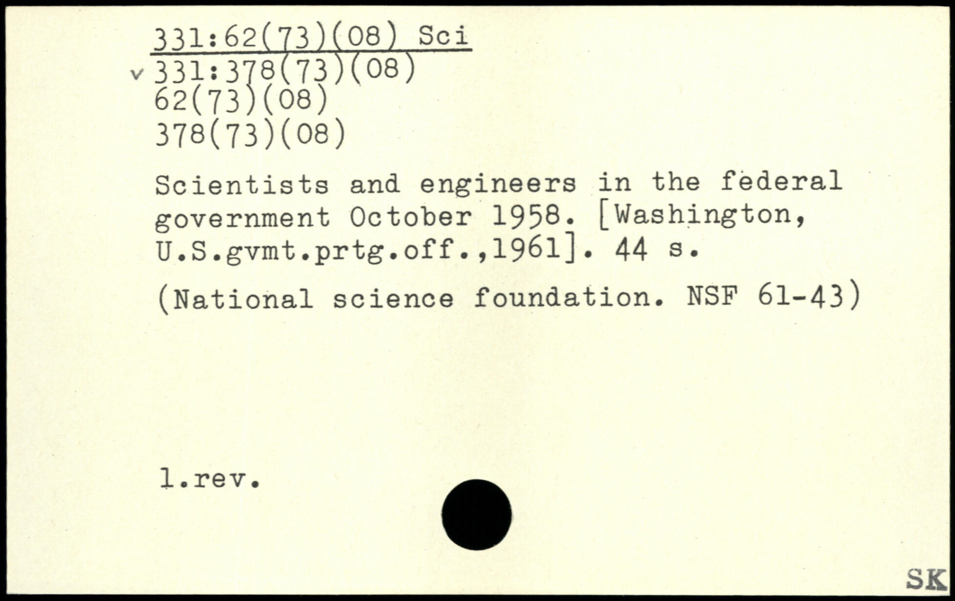 Scientists and engineers in the federal government October 1958. [Washington, U.S.gvmt.prtg.off.,1961].