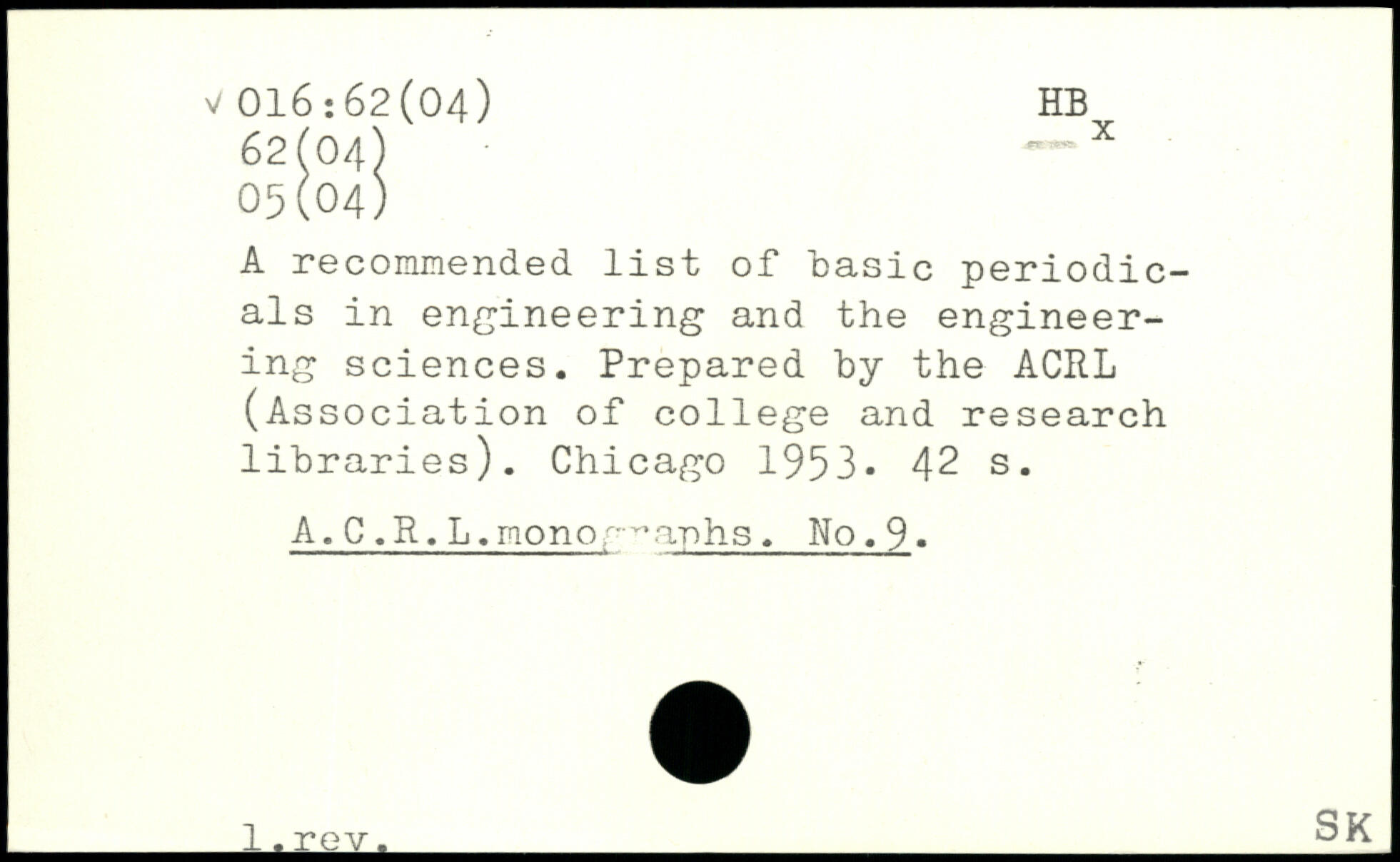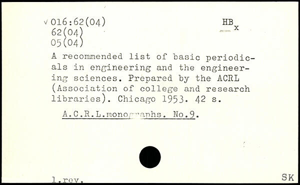 A recommended list of basic periodicals in engineering and the engineering sciences. Prepared by the ACRL (Association of college and research libraries).