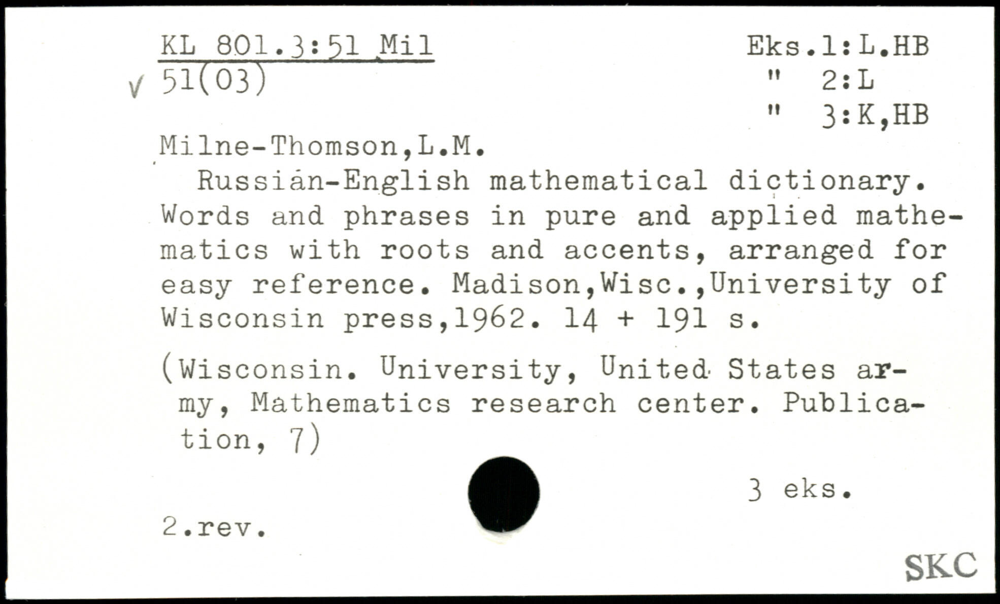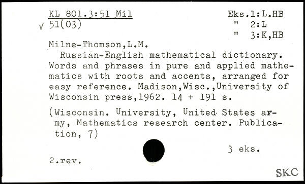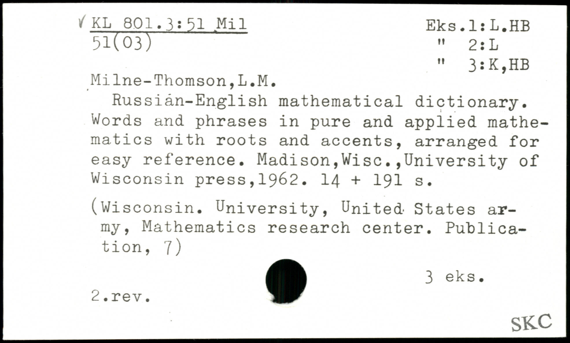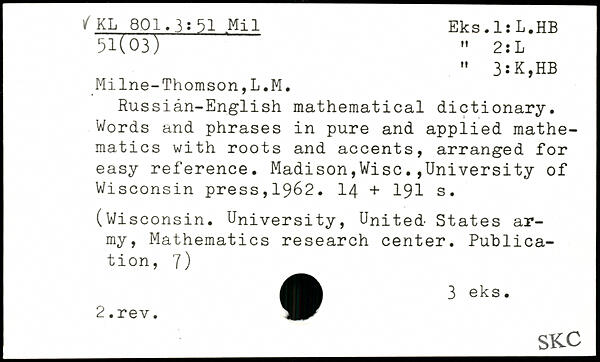 Russian-English mathematical dictionary. Words and phrases in pure and applied mathematics with roots and accents, arranged for easy reference.