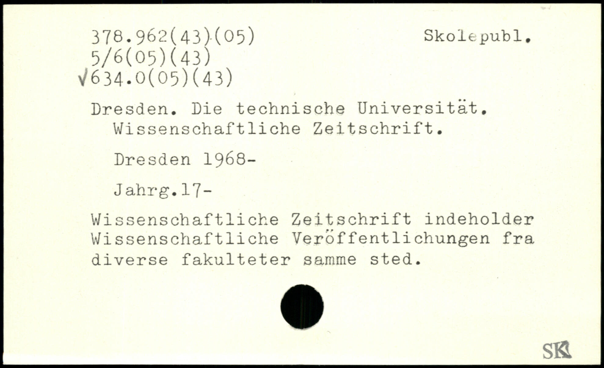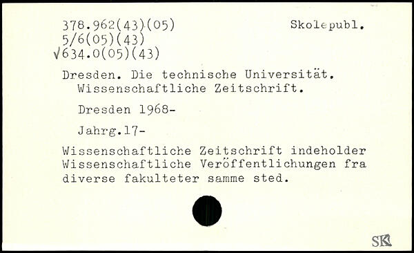 Dresden. Die technische Universität. Wissenschaftliche Zeitschrift. Dresden 1968- J ahrg.17- Wissenschaftliche Zeitschrift indeholder Wissenschaftliche Veröffentlichungen fra diverse fakulteter samme sted.