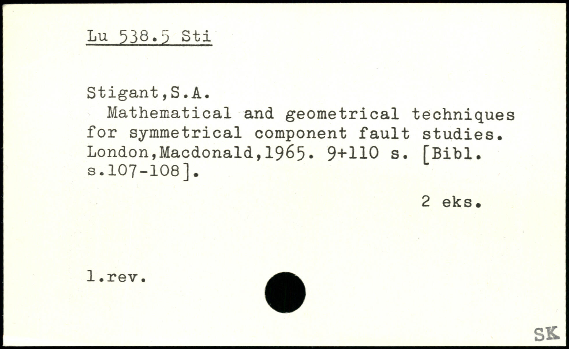 Lu 338.ij Sti Stigant,S.A. Mathematical and geometrical techniques for symmetrical component fault studies.