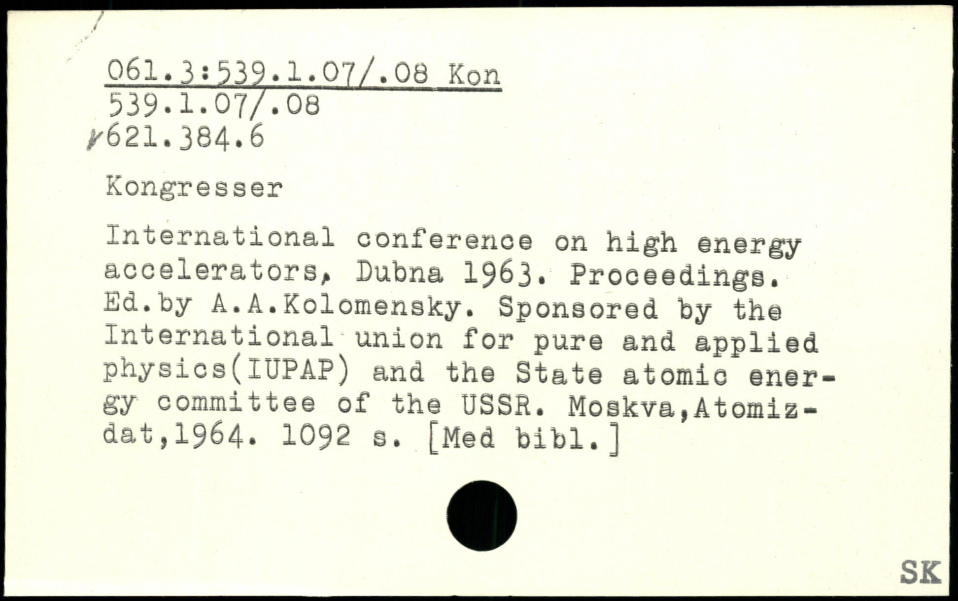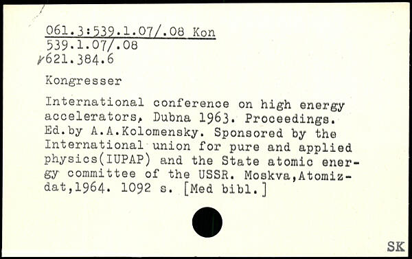 International conference on high energy accelerators, Dubna 1963. Proceedings. Ed.by A.A.Kolomensky. Sponsored by the International union for pure and applied physics(lTJPAP) and the State atomic energy committee of the USSR.