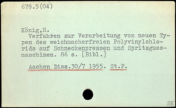 Verfahren zur Verarbeitung von neuen Typen des weichmacherfreien Polyvinylchlorids auf Schneckenpressen und Spritzgussmaschinen.