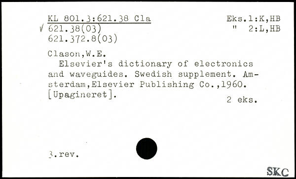 C lasori, W. E. Elsevier’s dictionary of electronics and waveguides. Swedish supplement.