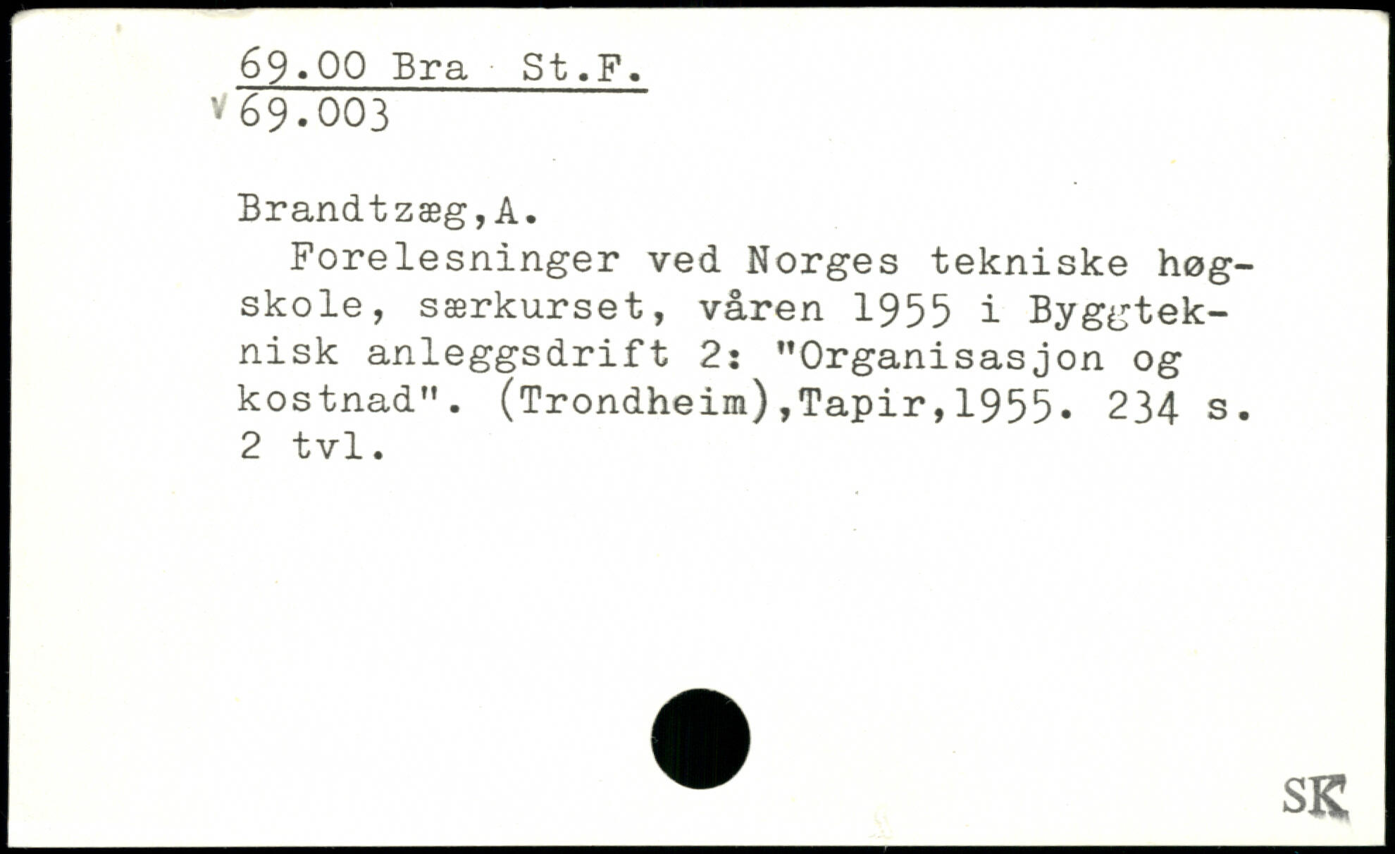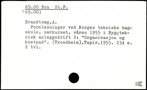 Forelesninger ved Norges tekniske høgskole, særkurset, våren 1955 i Byggtek-nisk anleggsdrift 2: ”Organisasjon og kostnad". (Trondheim),Tapir,1955.