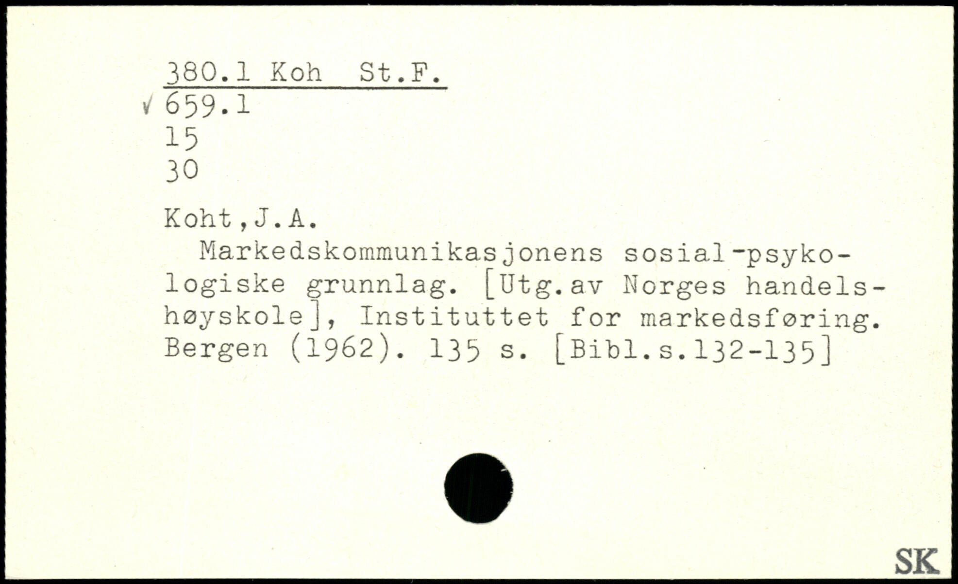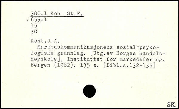 Markedskommunikasjonens sosial-psykologiske grunnlag. [Utg.av Norges handelshøjskole], Instituttet for markedsføring. Bergen (1962).