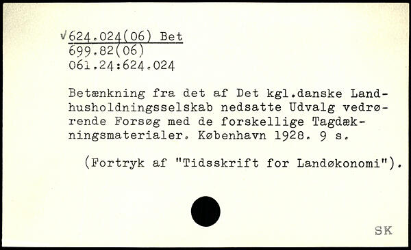 Betænkning fra det af Det kgl.danske Landhusholdningsselskab nedsatte Udvalg vedrørende Forsøg med de forskellige Tagdækningsmaterialer