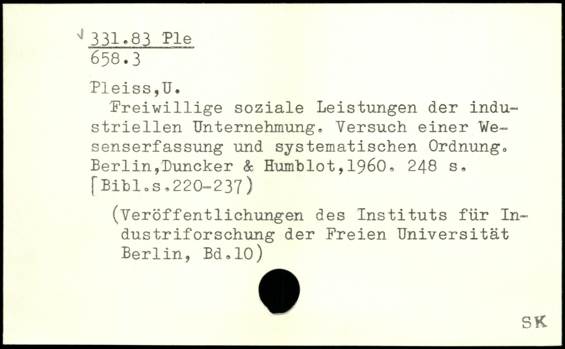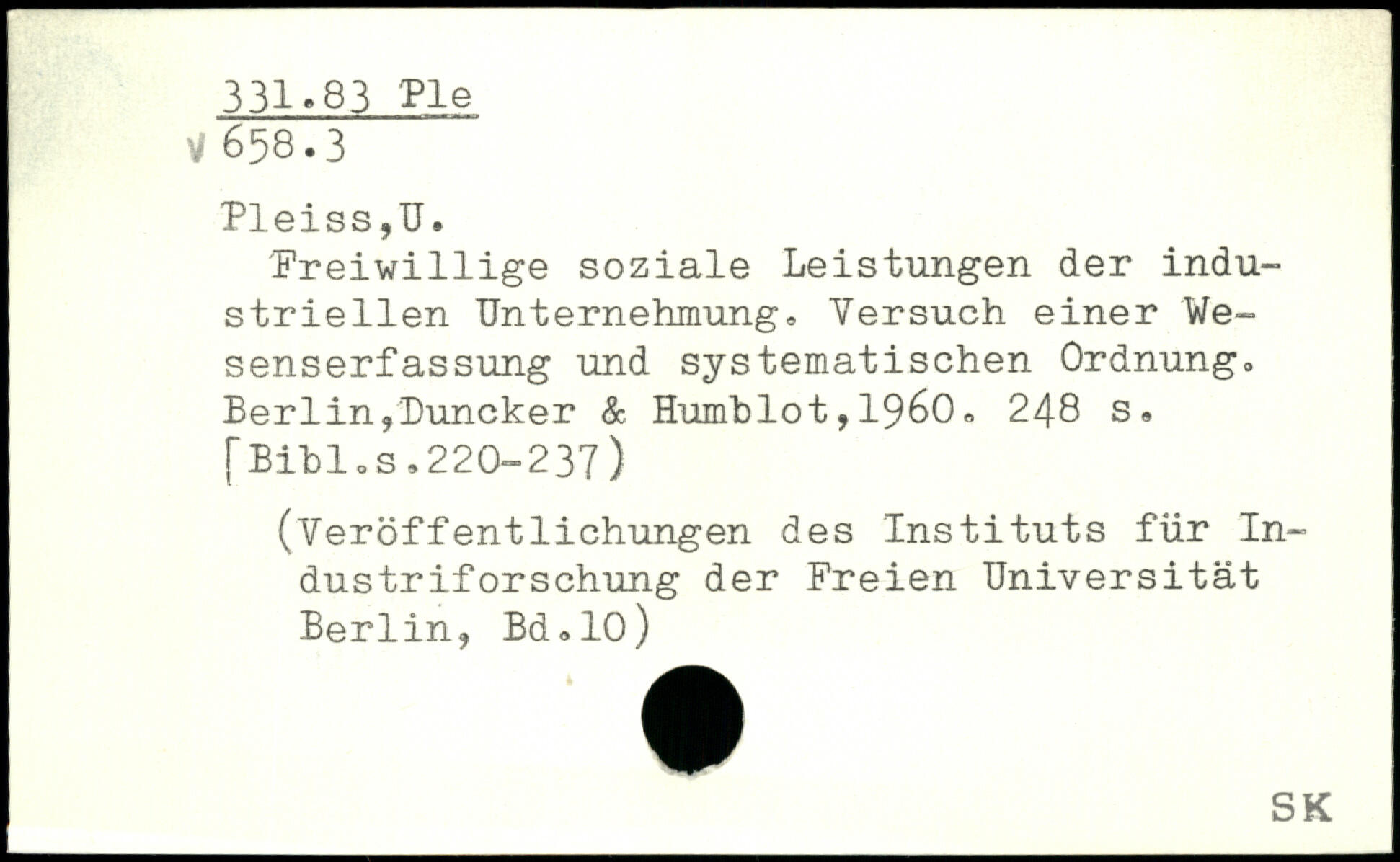 Freiw1111ge soziale Leistungen der industriellen Unternehmung. Versuch einer Wesenserfassung und systematischen Ordnung. Berlin ,I)uncker & Humblot, 1960.