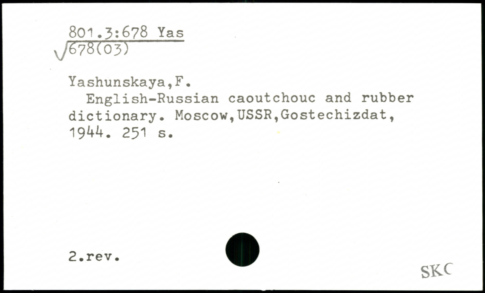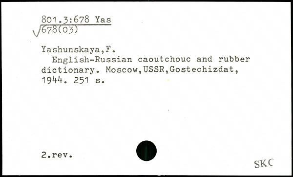 English-Russian caoutchouc and rubber dictionary. Moscow,USSR,Gostechizdat t 19^.