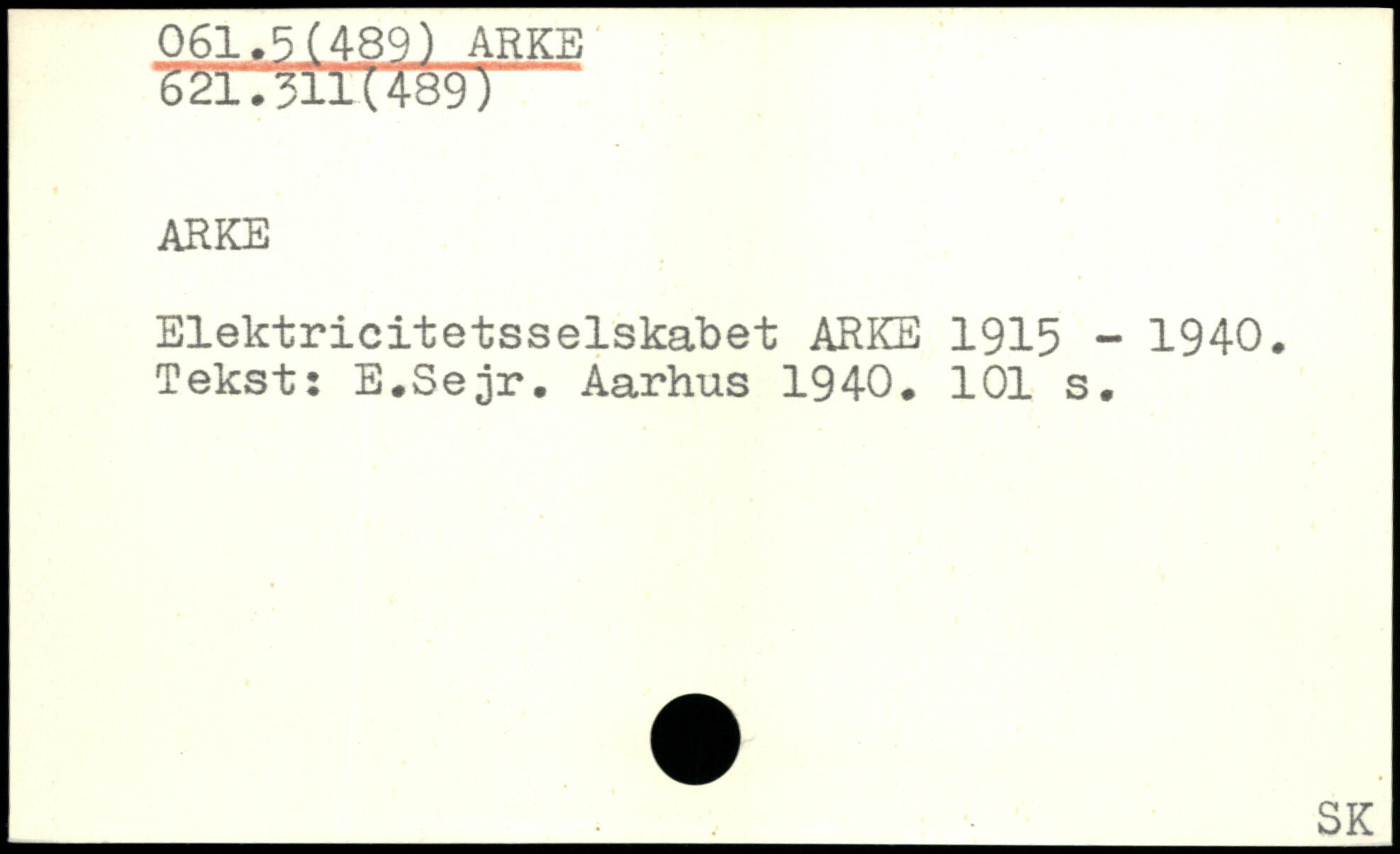 Elektricitetsselskabet ARKE 1915 - 1940. Tekst: E.Sejr.
