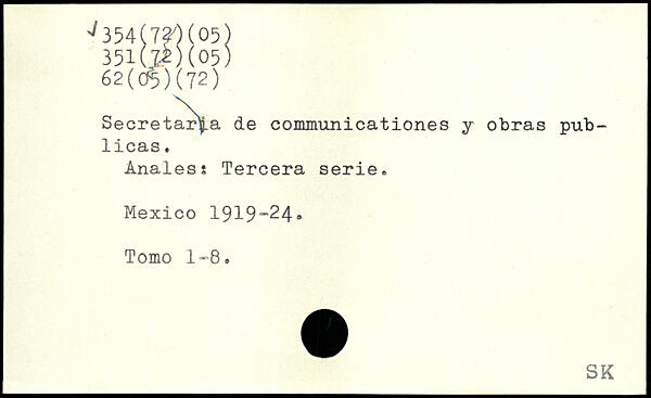 Secretar^a de communicationes y obras pub- licas. Anales s Tercera serie, Mexico 1919-24. Tomo 1-8