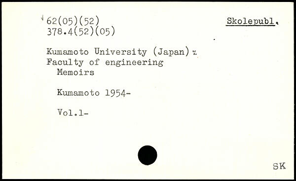 Kumamoto University (Japan) .£ Faculty of engineering Memoirs Kumamoto 1954- Vol.l-