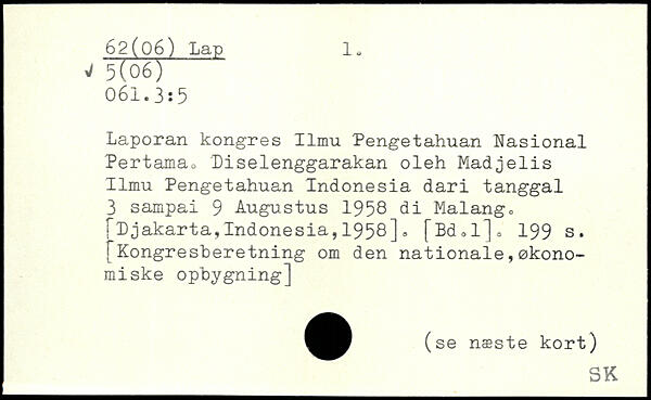 Laporan kongres Ilmu Pengetahuan Nasional Pertama. 'Pise 1 enggarakan oleh Madjelis Ilmu Pengetahuan Indonesia dari tanggal